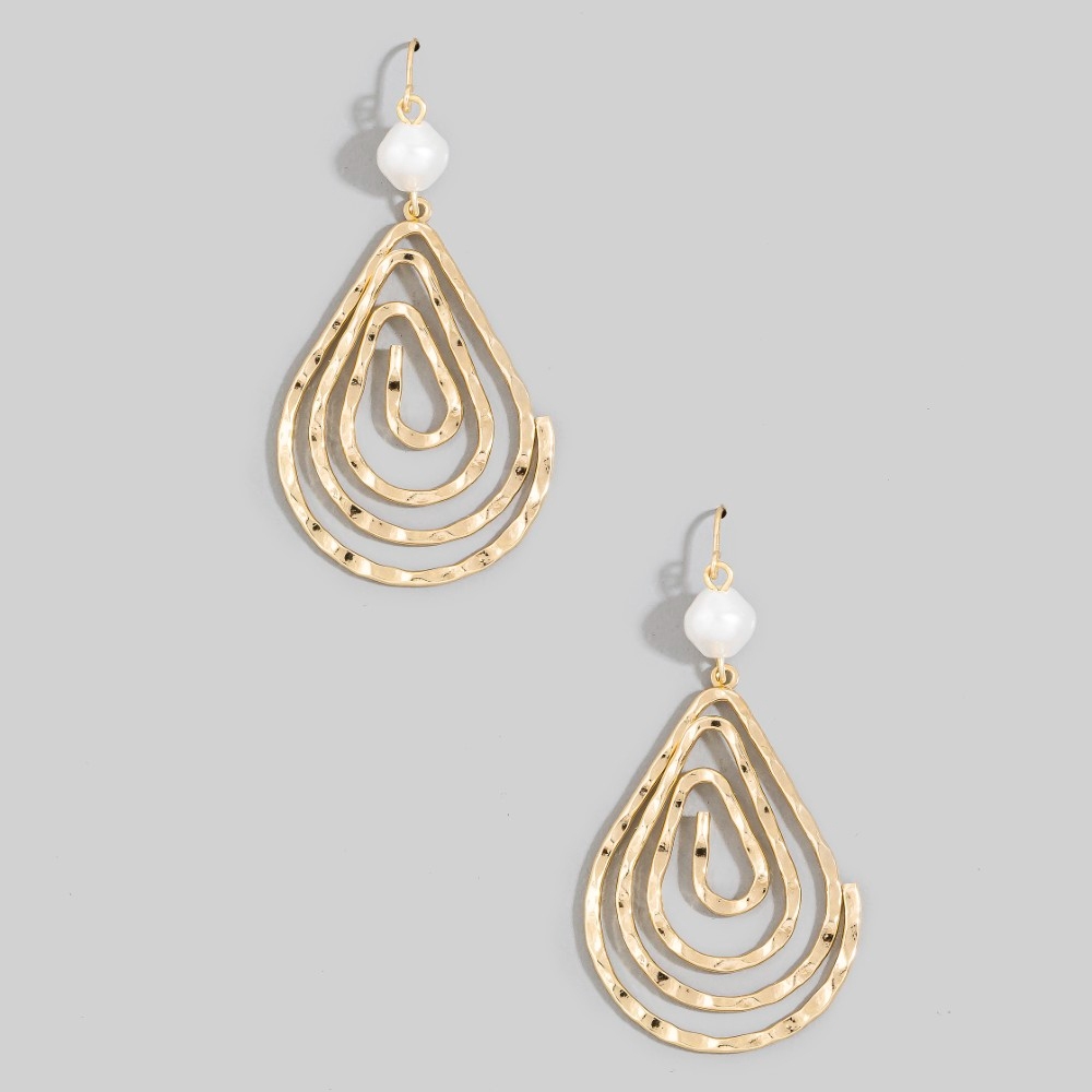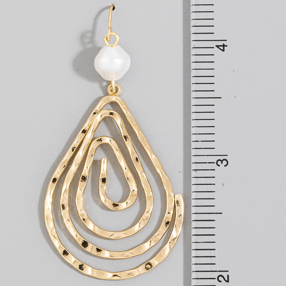 • Bold, daring, and endlessly stylish, this pair of dangle earrings showcases a breathtaking pearl bead spiral hammered tear design. This pair of dangle earrings is a great way to add some flair to your outfit without going over the top. Available in GP. This item is sold in packs of 1.