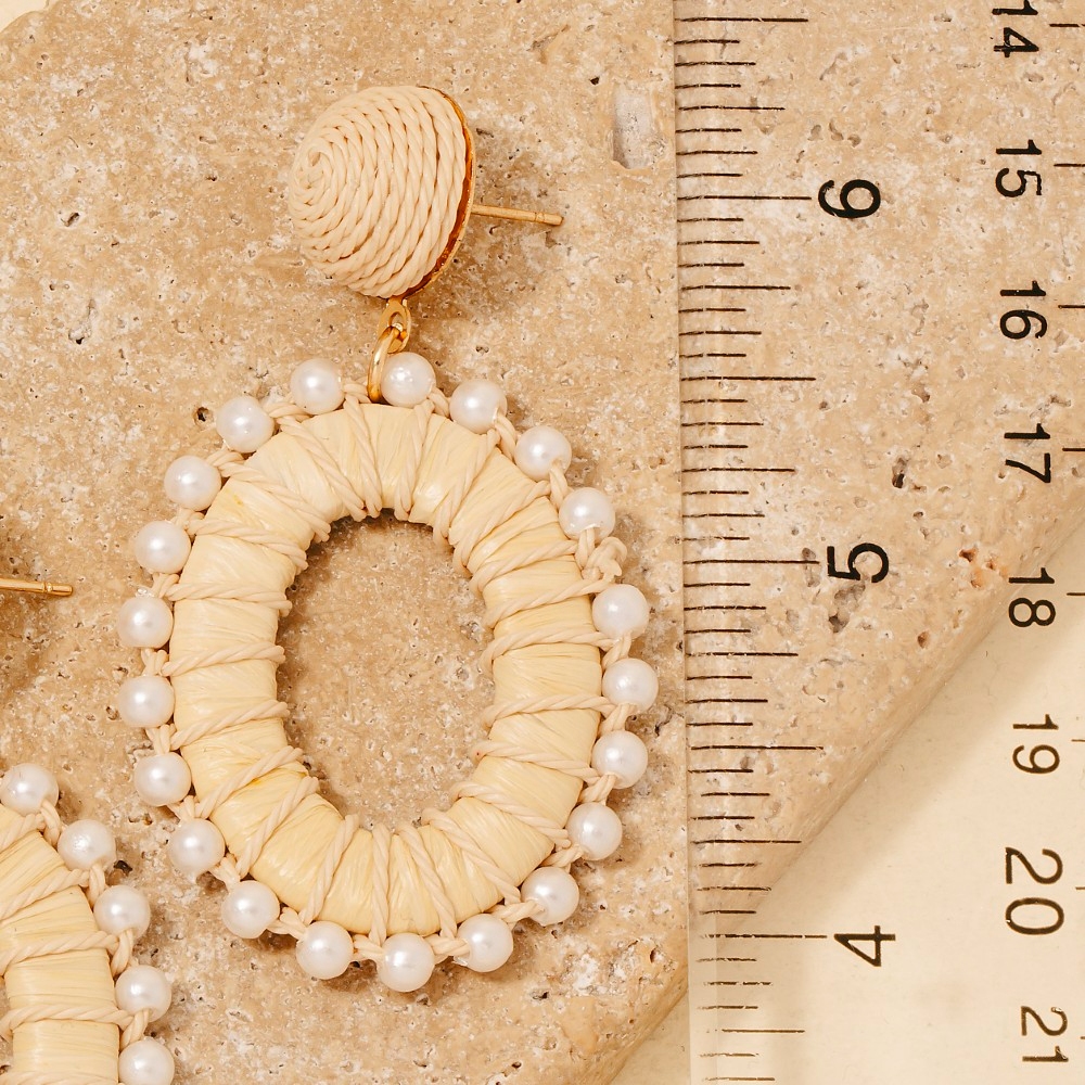 Add a touch of luxury to any outfit, this pair of dangle earrings showcases a breathtaking pearl beads rattan wrap oval hoop design. This versatile pair of dangle earrings adds a touch of elegance to any outfit. This item is sold in packs of 12.