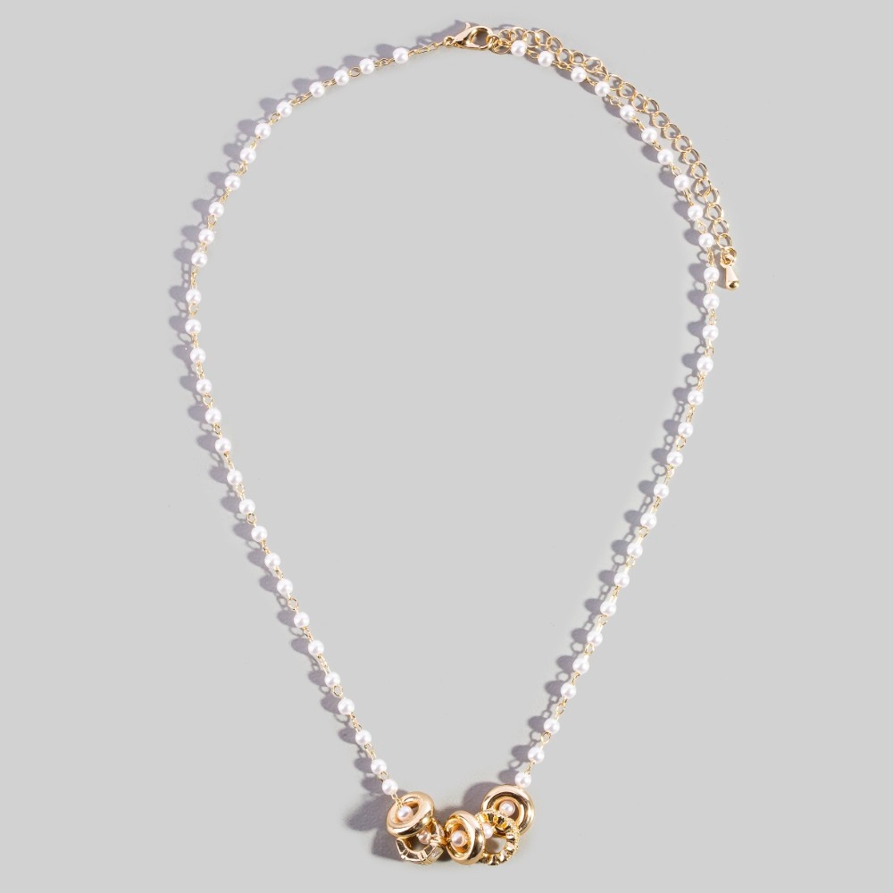• Make a bold statement, this necklace adds a distinctive pearl chain ring cluster charm design. Redefine your wardrobe with this versatile necklace, a timeless addition that brings an air of sophistication to any look. Available in GCM. This item is sold in packs of 1.