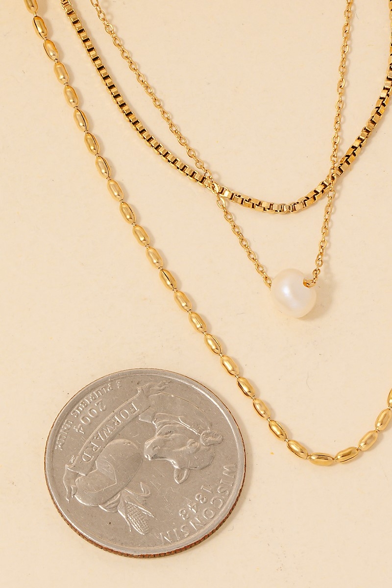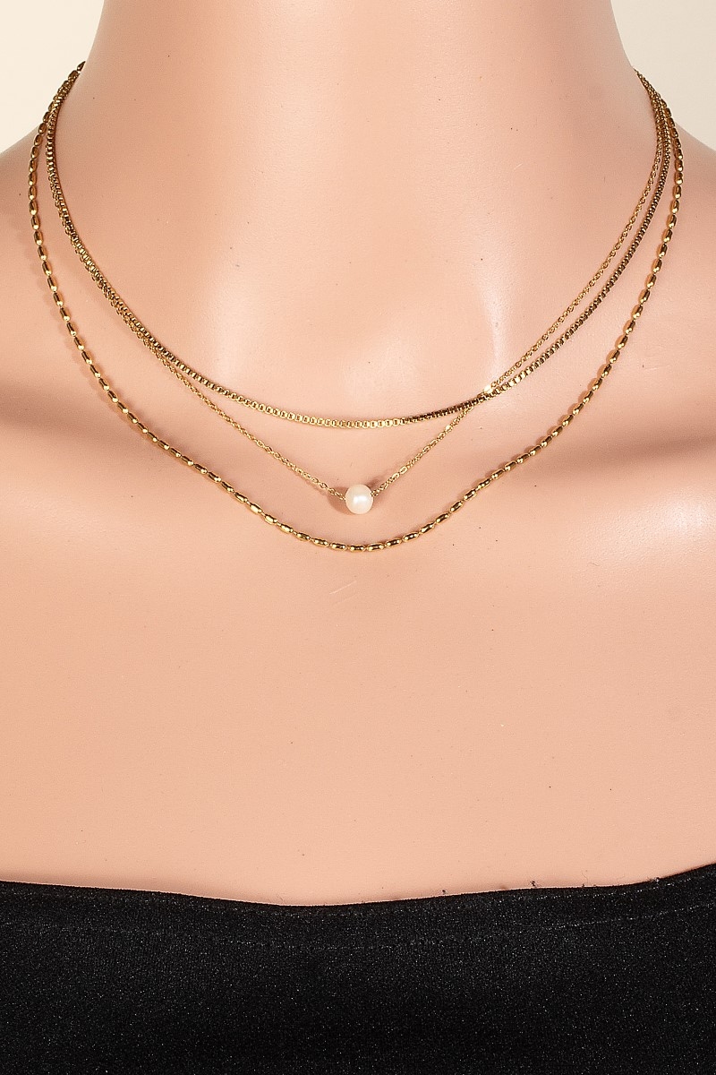 This chain necklace showcases a timeless pearl charm stainless steel mixed style. Immerse yourself in fashion finesse with this statement chain necklace.