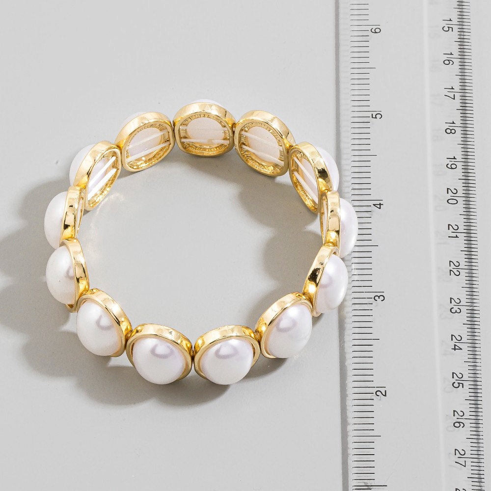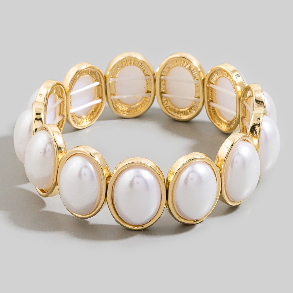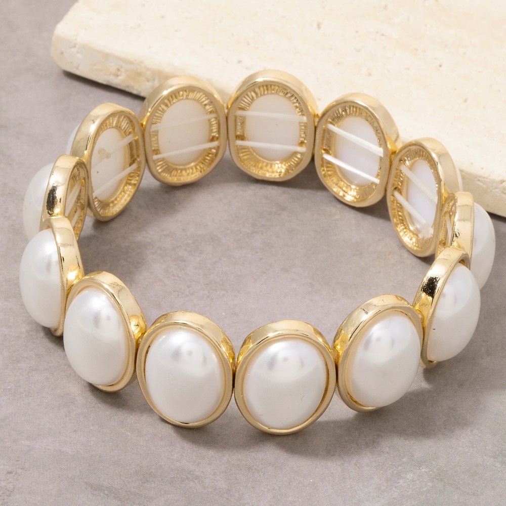 The perfect way to elevate any outfit, this bracelet exudes a refined pearl ovals elastic design. Elevate your fashion IQ with this versatile bracelet, designed to seamlessly integrate into any style profile. Available in GDCRM. This item is sold in packs of 1.