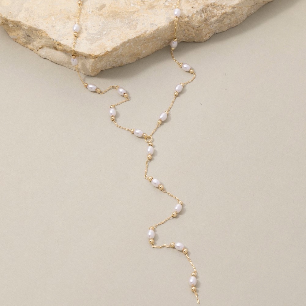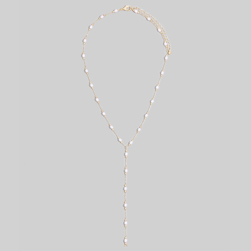 • Stay on-trend and ahead of the fashion curve, this necklace exudes a refined pearl station lariat y- design. Infuse your ensemble with a touch of sophistication using this versatile necklace, a game-changer in the world of fashion. Available in G. This item is sold in packs of 1.