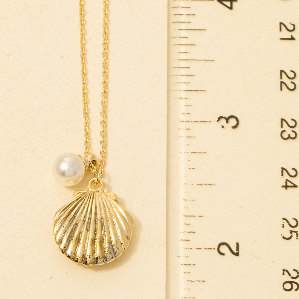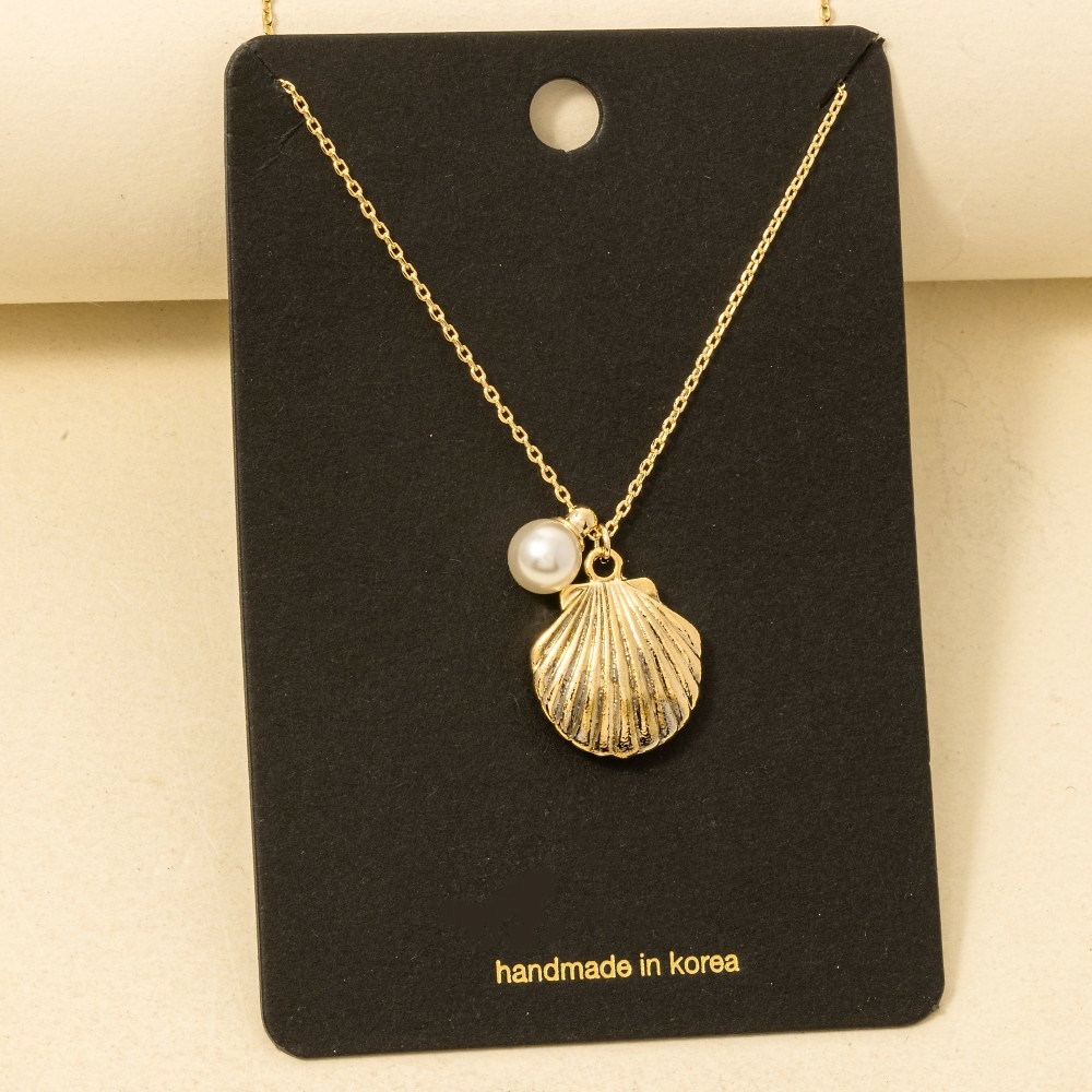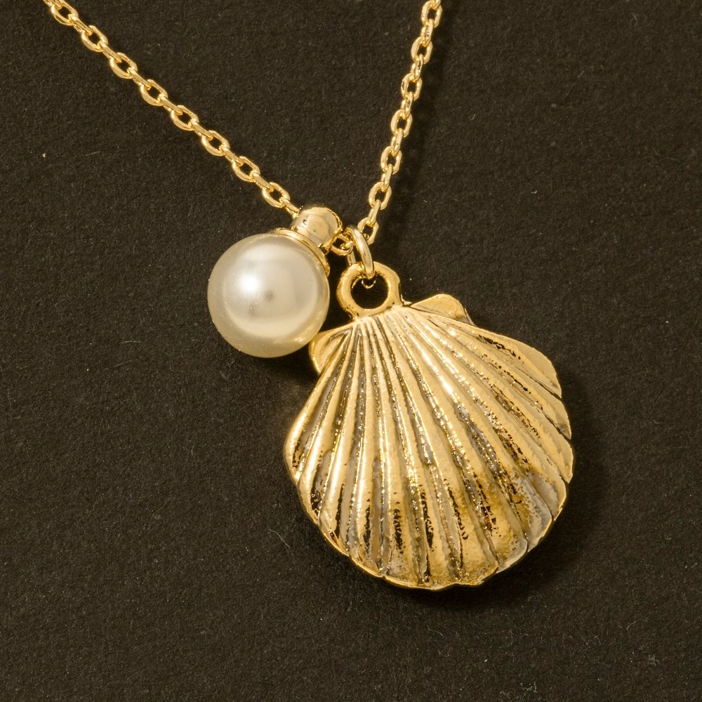 - Uniquely designed and endlessly stylish, this necklace adds a distinctive pearla and clam shell pendant design. Infuse a hint of luxury into your daily attire with this versatile necklace, a must-have for those who appreciate timeless elegance. Available in G. This item is sold in packs of 1.