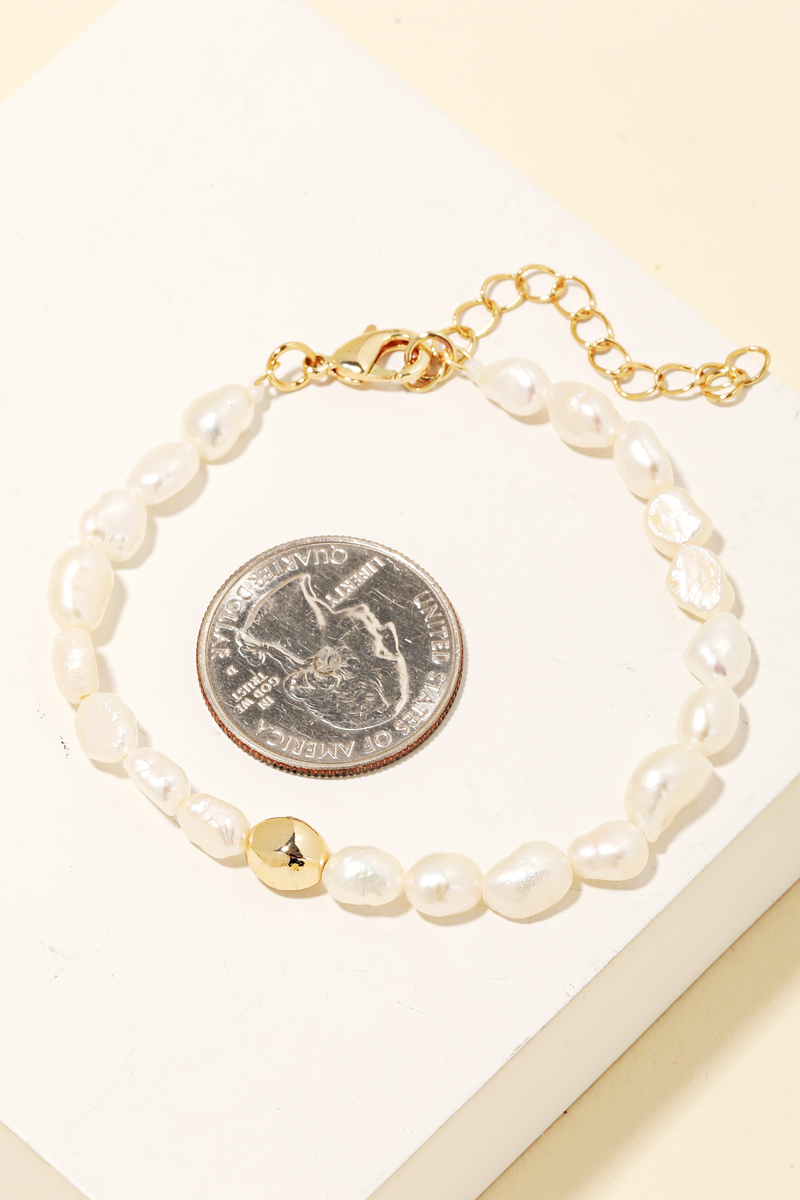 This bracelet is made with 10% Copper and 90% Freshwater Pearl.