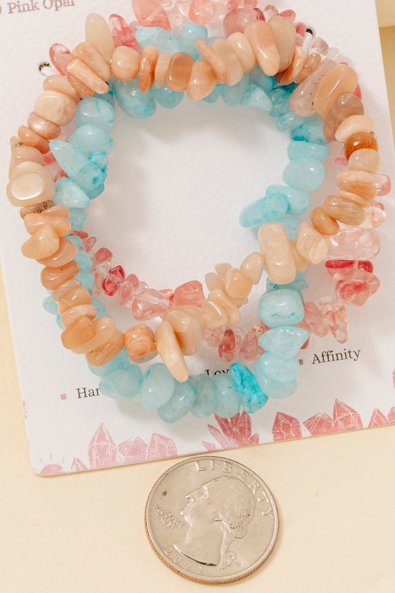 This bracelet displays a vibrant pebble stone beaded set style. Explore a blend of classic charm and contemporary flair.