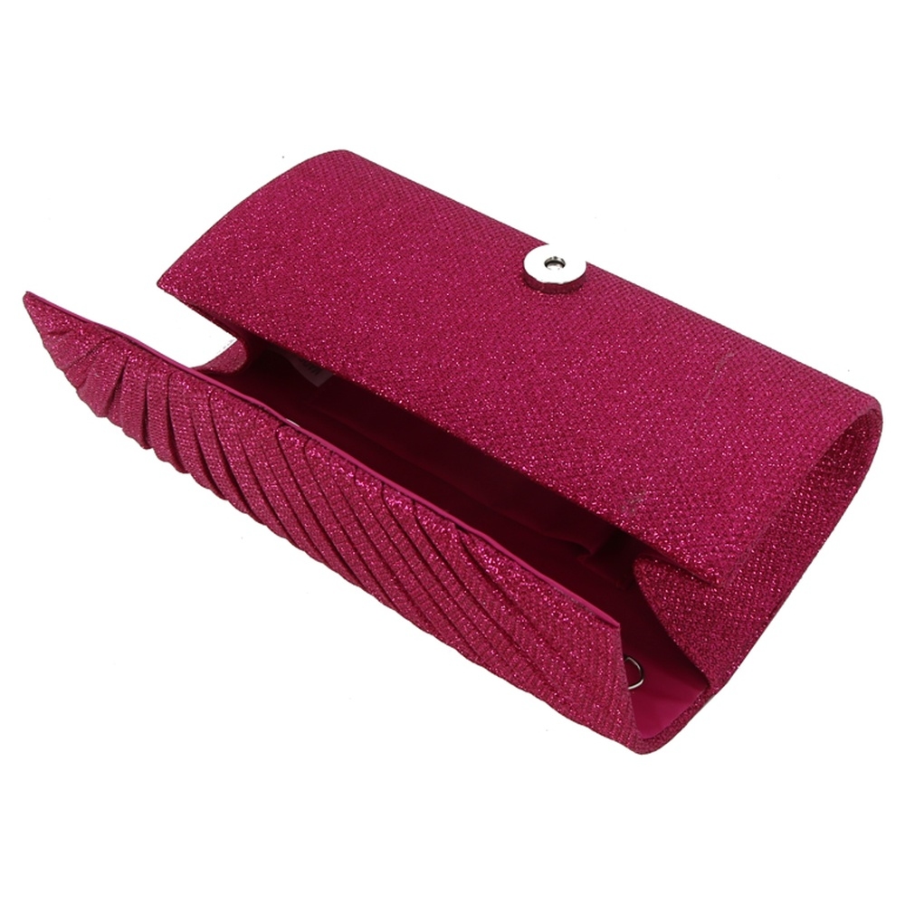 Effortlessly stylish and always on-trend, this clutch bag adds a distinctive pleated rhinestone envelope flap design. This clutch bag is a great way to add some glamour and sophistication to your outfit. Available in BK, FU, GD, SL. This item is sold in packs of 1.