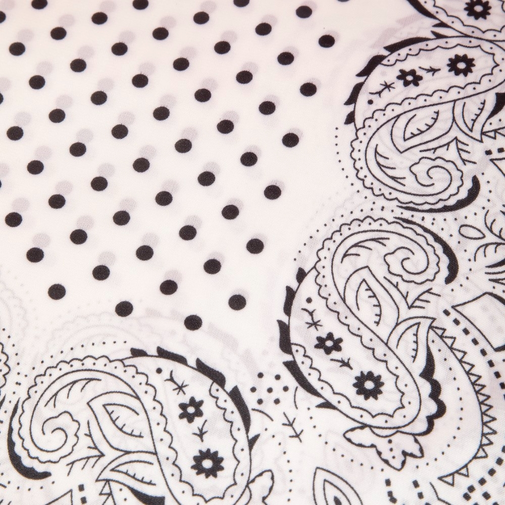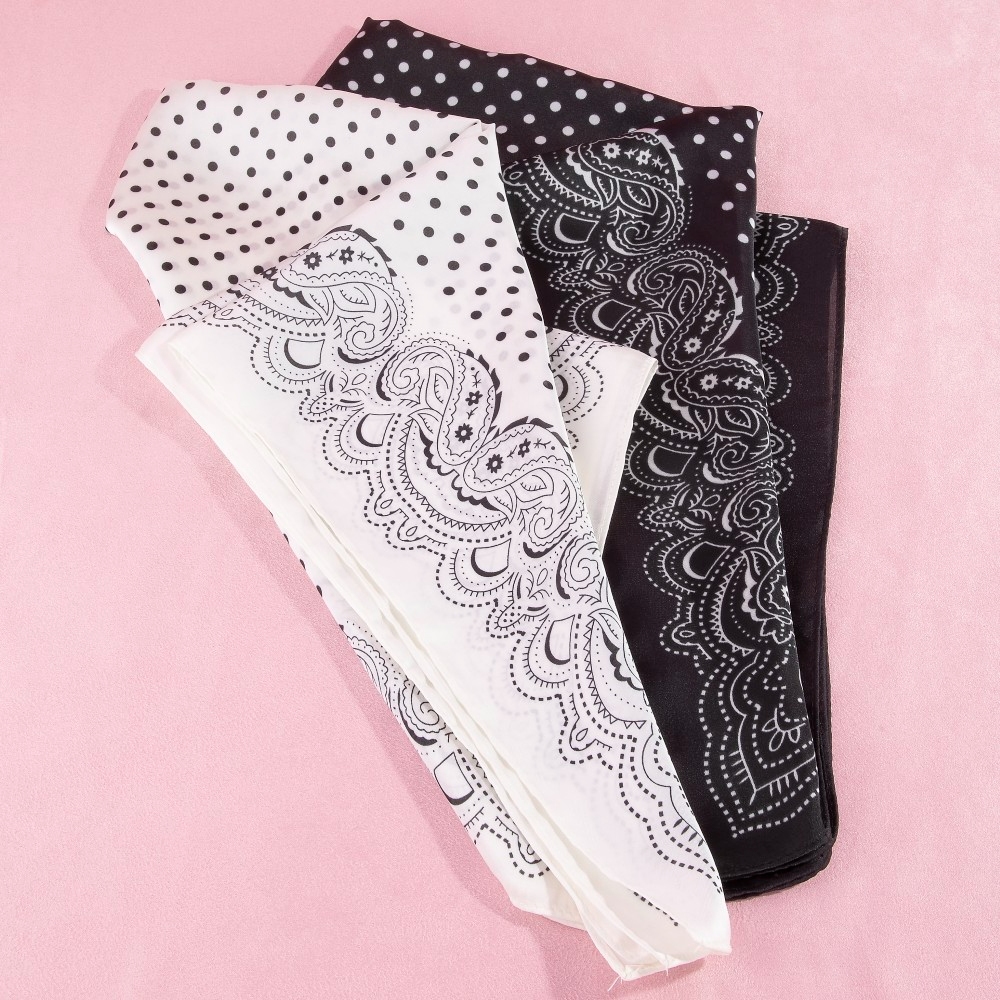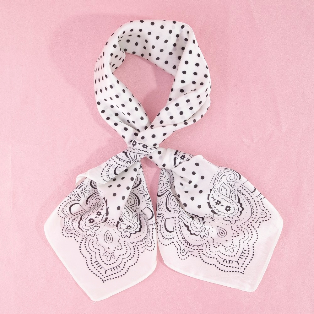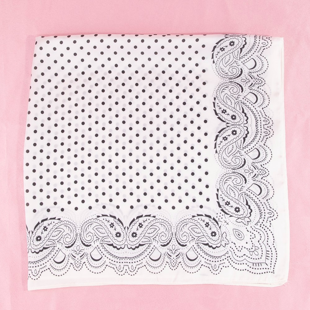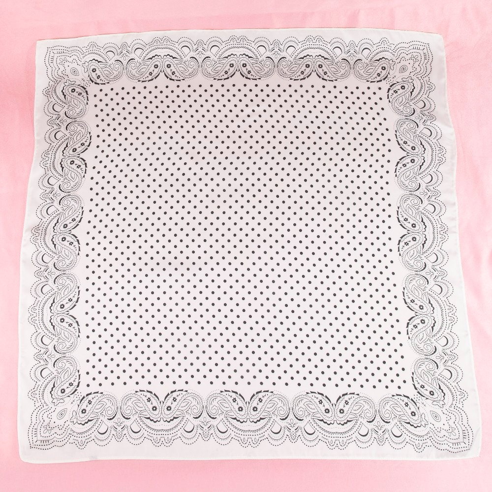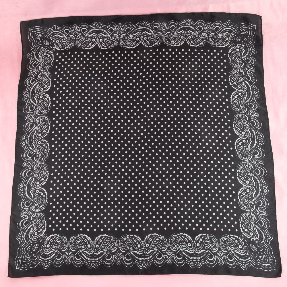 • A unique and stylish piece that sets you apart, this scarf displays a unique polka dot & paisley border print satin square design. Elevate your fashion IQ with this versatile scarf, designed to seamlessly integrate into any style profile. This item is sold in packs of 12.
