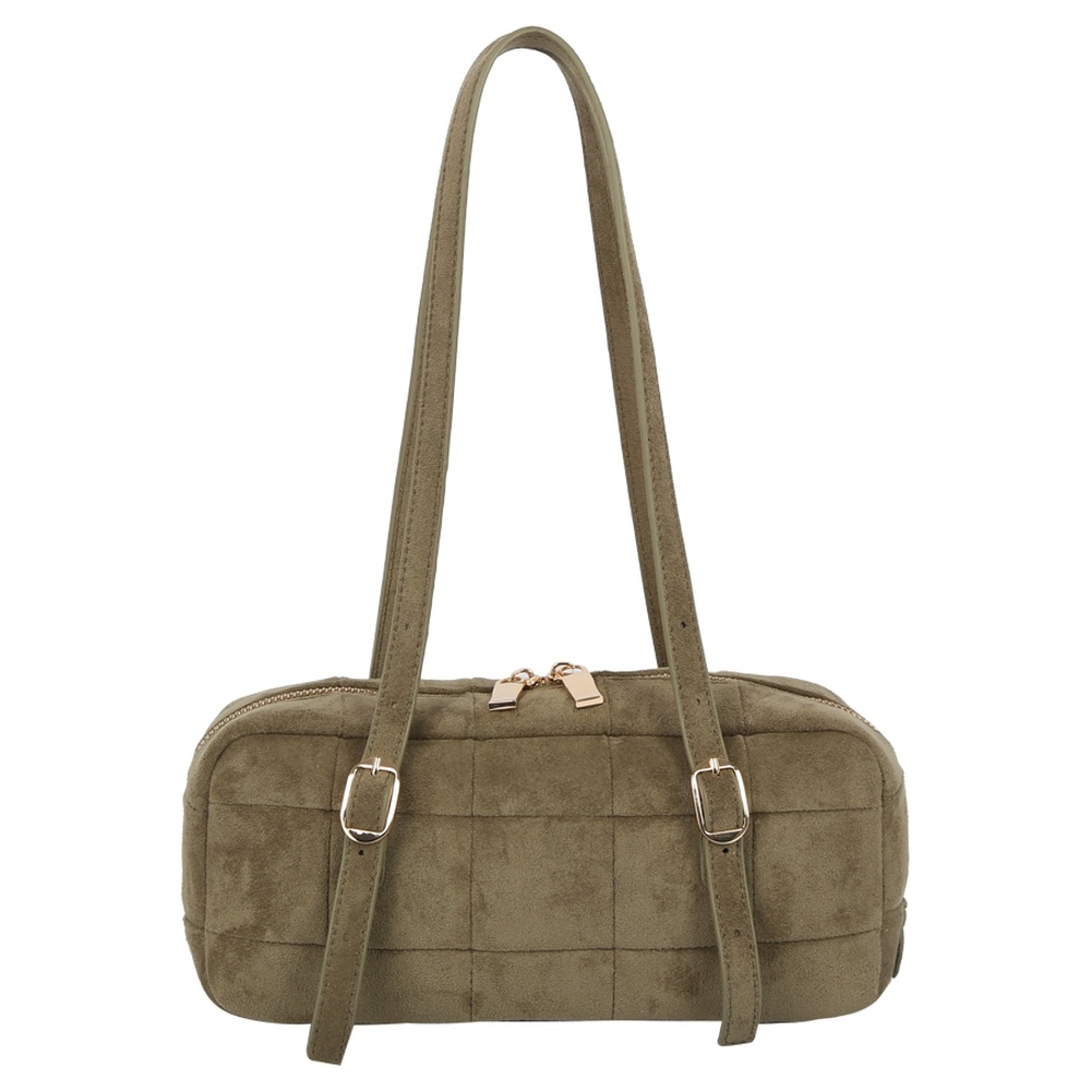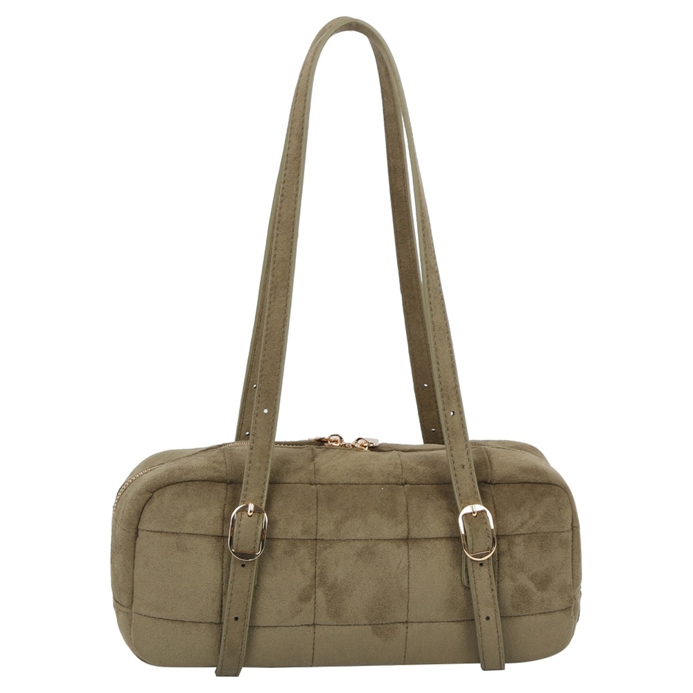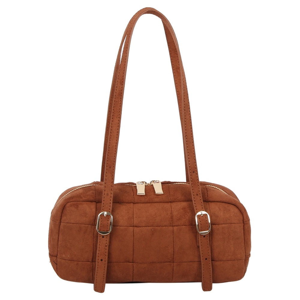 • This season's must-have shoulder bag, this shoulder bag possesses a fine puffy quilted suede design. Elevate your style effortlessly with this versatile shoulder bag, enhancing the appeal of any ensemble. Available in BK, BR, CA, CF, SG, ST. This item is sold in packs of 1.