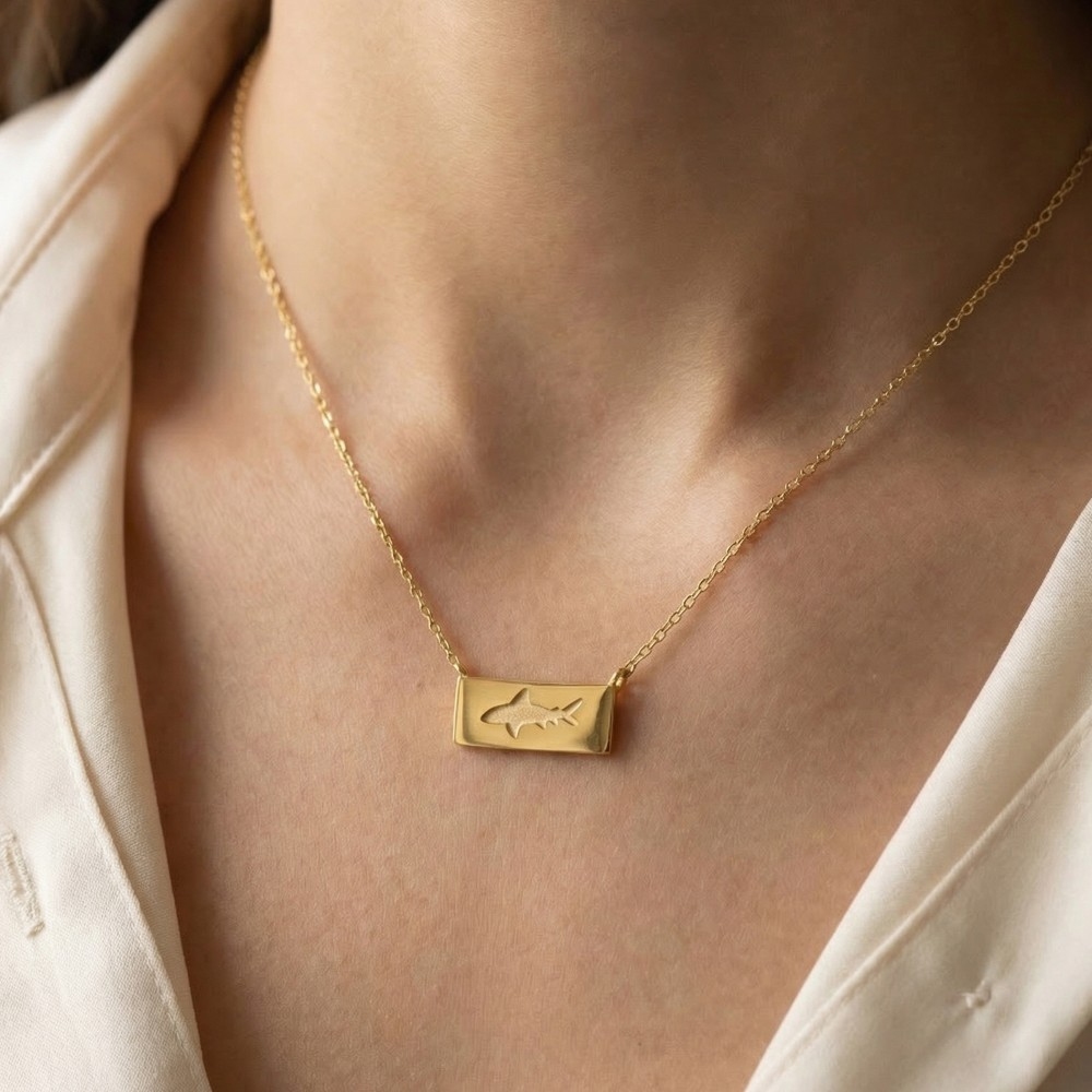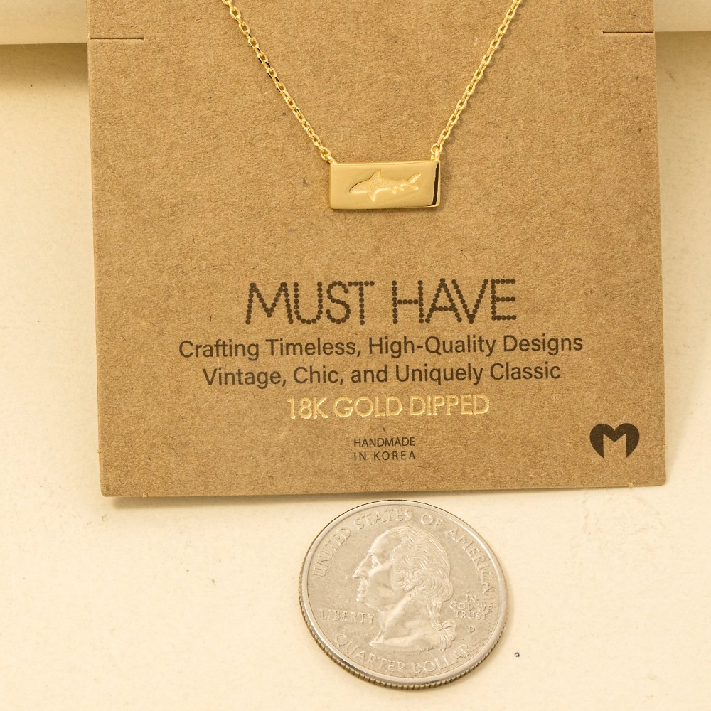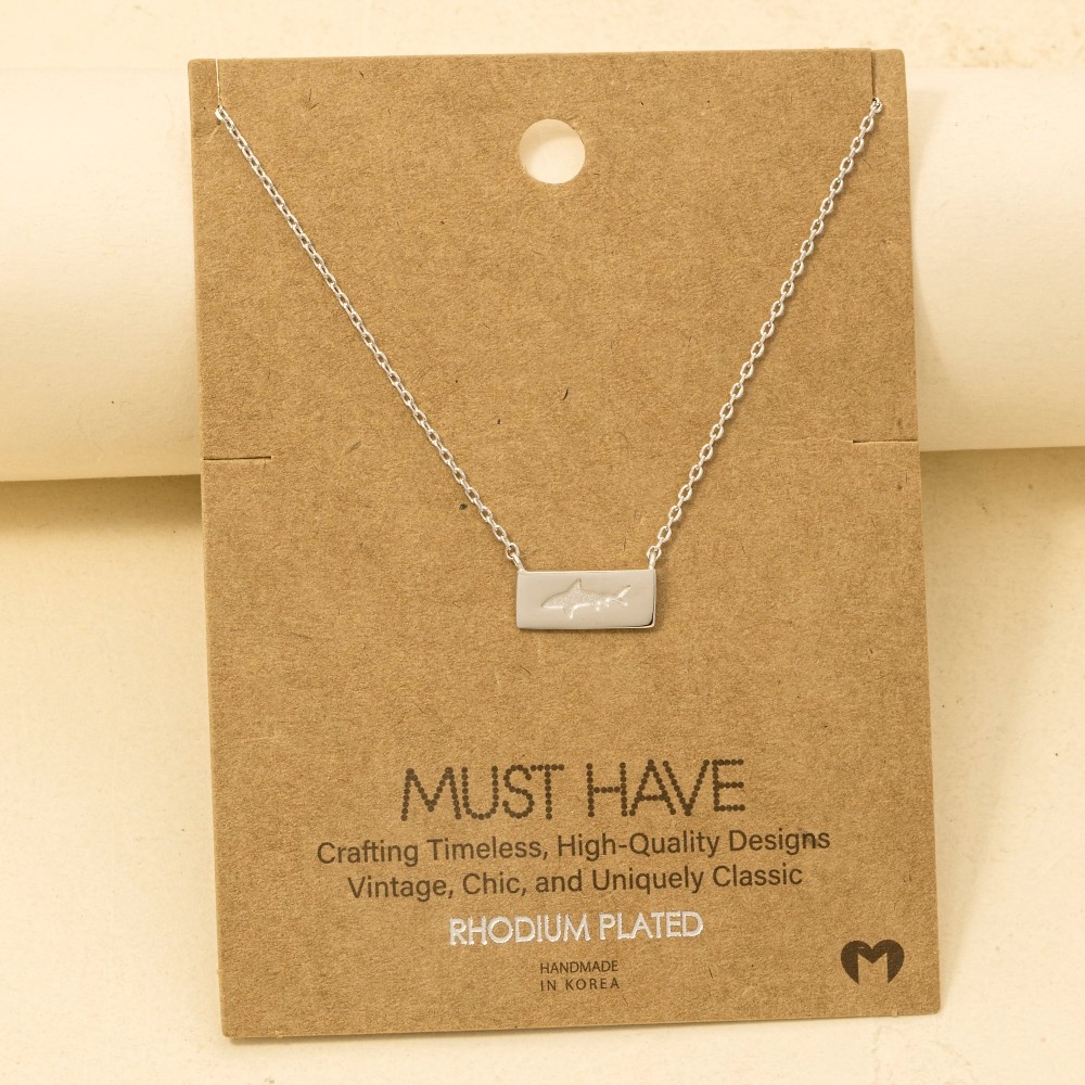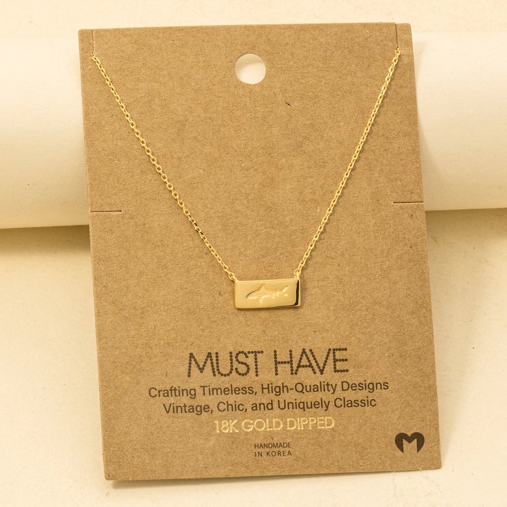 • Guaranteed to add a touch of glamour to any outfit, this pendant necklace showcases a breathtaking rectangle bar shark design. Achieve a perfect blend of style and sophistication with this versatile pendant necklace, a fashion-forward choice for any occasion. Available in G, S and R. This item is sold in packs of 12.