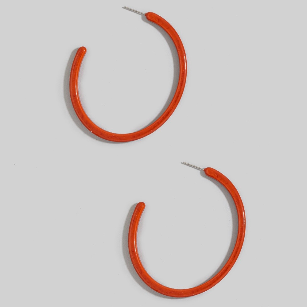 • Make a statement, this pair of hoop earrings displays a unique resin large design. This item is ideal for those who want to add some personality to their wardrobe without being too bold. Available in 2. This item is sold in packs of 1.