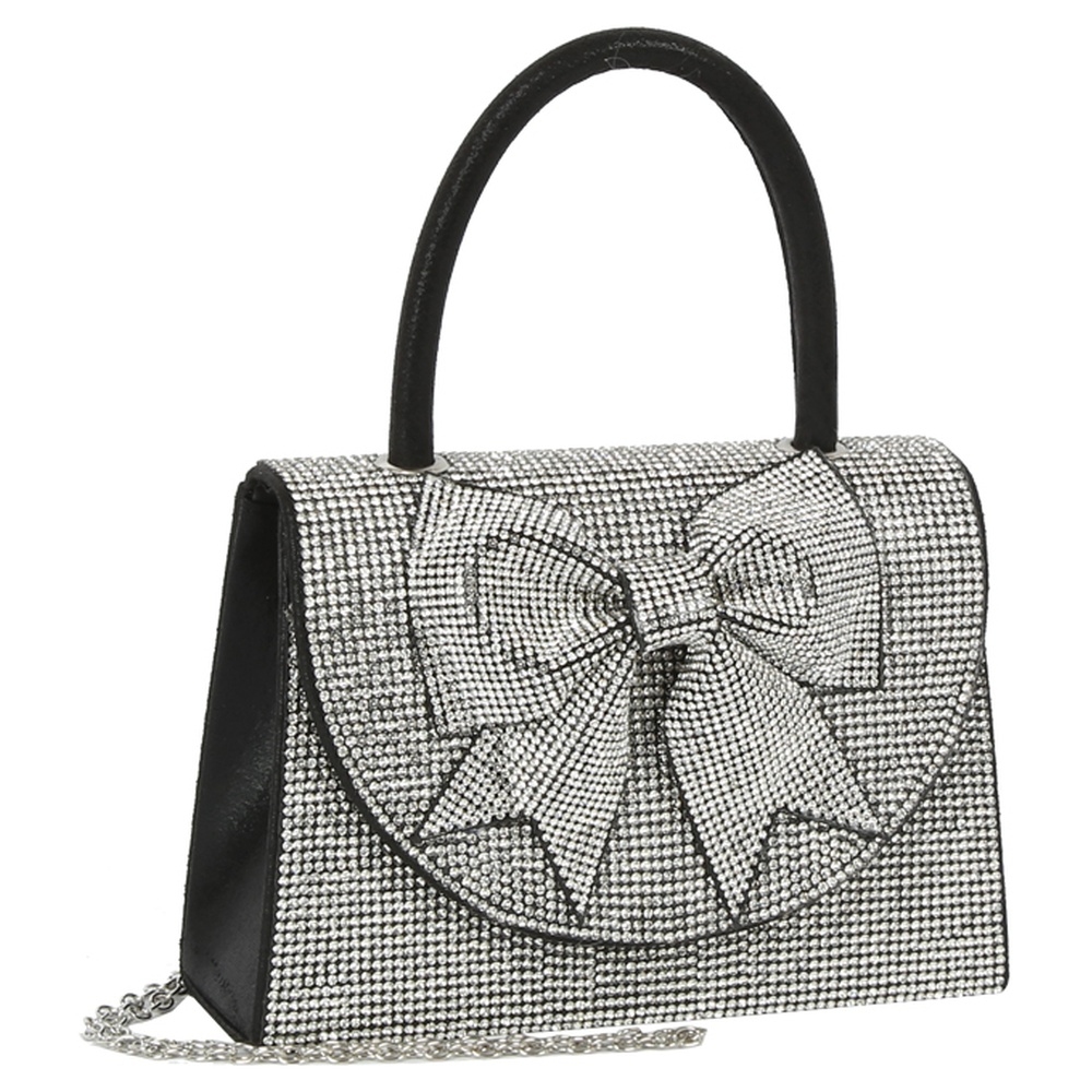Chic, sophisticated, and always in style, this hand bag exudes a refined rhinestone bow flap top handle design. Perfect for dressing up or down, this versatile hand bag adds a touch of sophistication to any look. Available in BK. This item is sold in packs of 1.