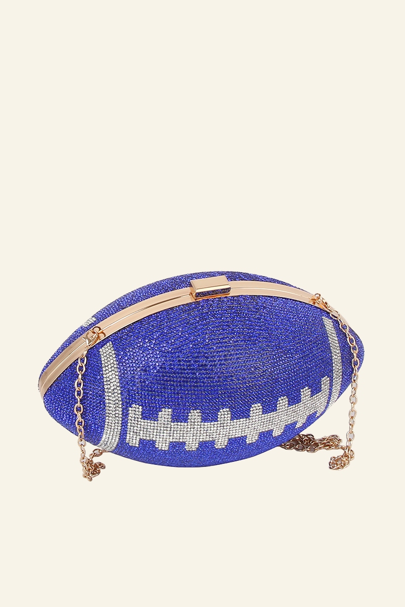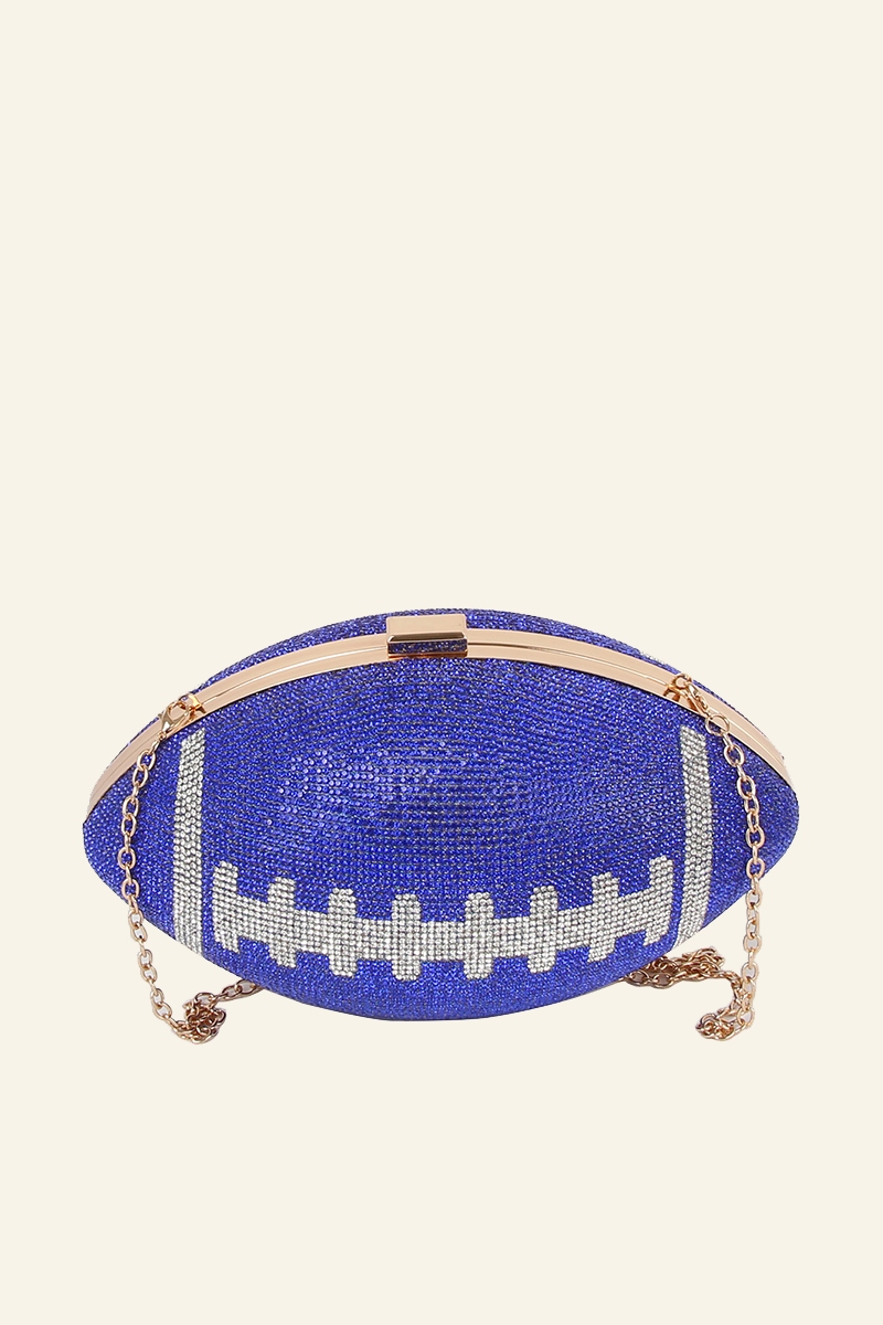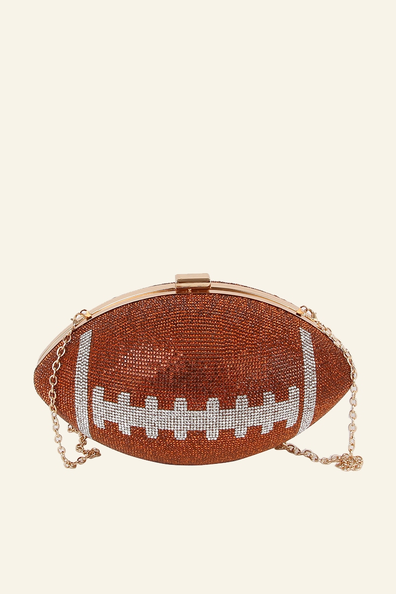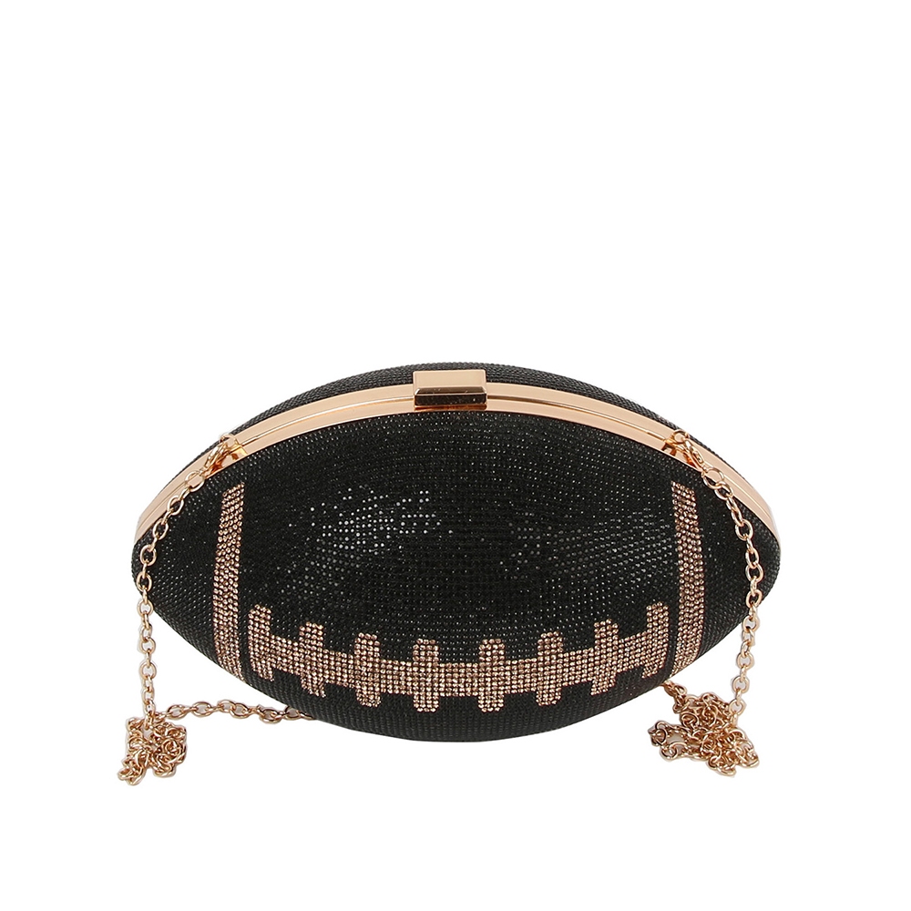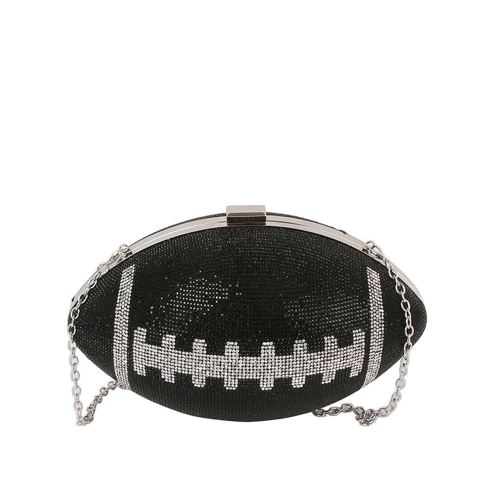 - Uniquely designed and endlessly stylish, this clutch bag features an exceptional rhinestone encrusted football design. This item is ideal for those who want to add some personality to their wardrobe without being too bold. Available in BK, BK1, BR. This item is sold in packs of 1.