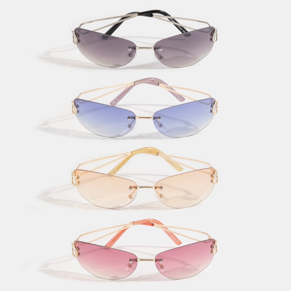 A must-have for any fashion-forward individual, this set of sunglasses incorporates a flawless rimless slim cat-eye wrap sunglasses set design. A must-have set of sunglasses that adds a unique flair to any look. Available in ASSORTED. This item is sold in packs of 12.