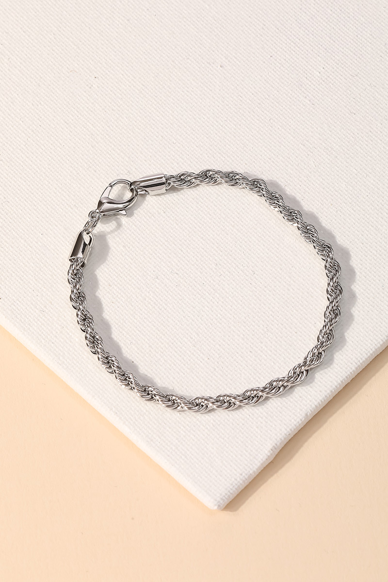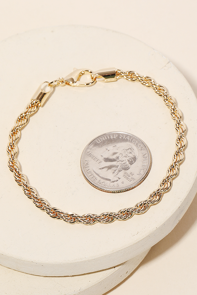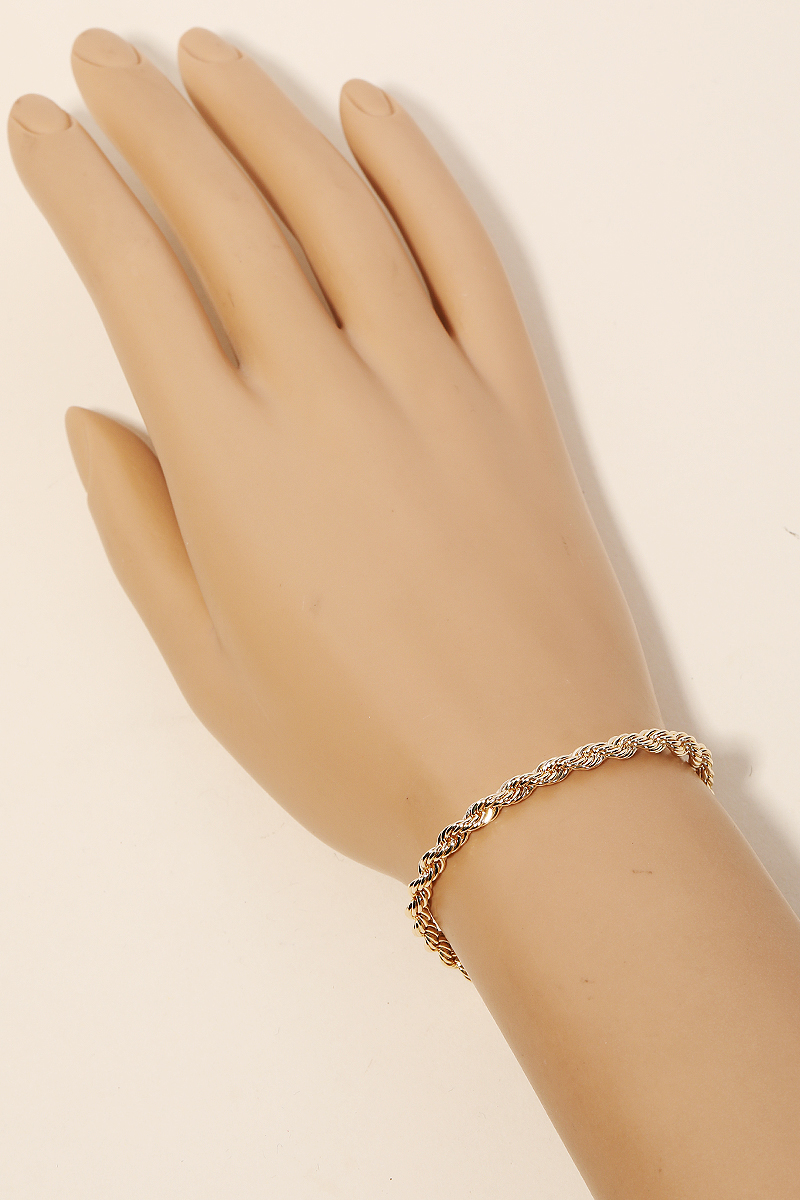 - The perfect way to showcase your unique style, this chain bracelet carries a charming dainty braided rope design. Perfect for dressing up your favorite outfit, this chain bracelet is a must-have. Available in G, S. This item is sold in packs of 12.