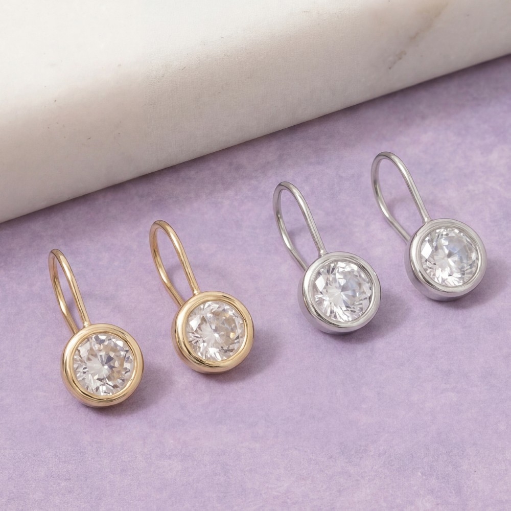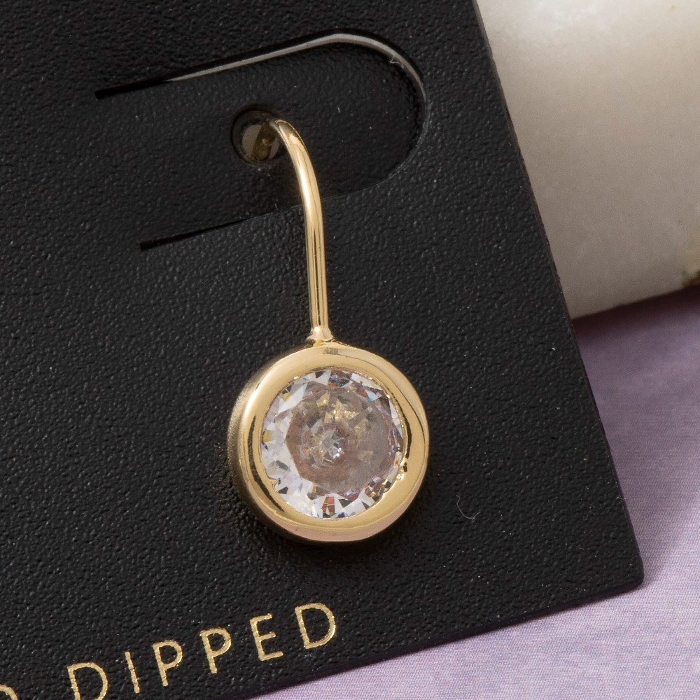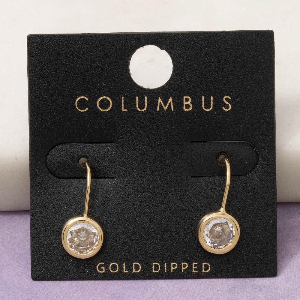 This piece is the epitome of sophistication and elegance, this pair of drop earrings flaunts a luxurious round cubic zirconia bezel design. Elevate your style effortlessly with this versatile pair of drop earrings, enhancing the appeal of any ensemble. Available in GOLD, 2SILVER. This item is sold in packs of 1.