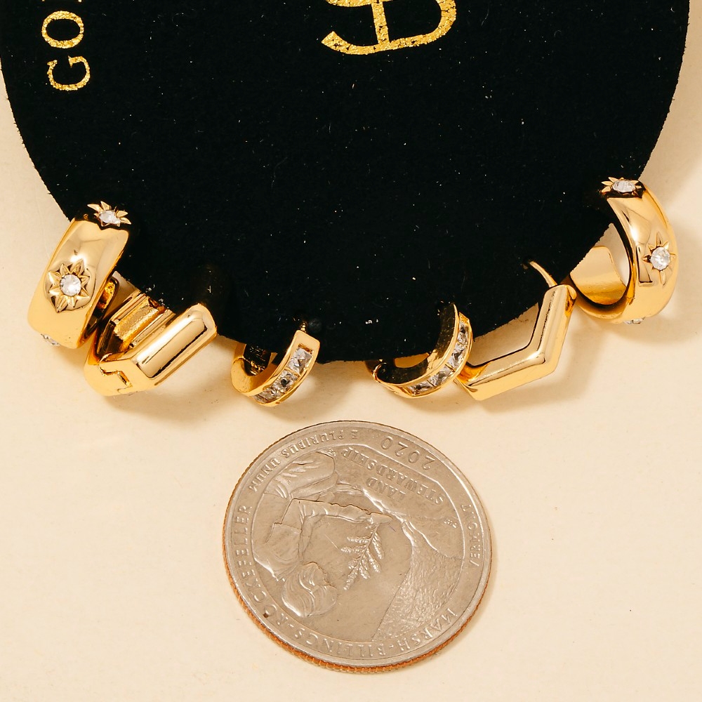 A must-have addition to any pair of hoop earrings collection, this pair of hoop earrings radiates a sleek secret box gold dipped 3 pair mixed cubic zirconia set design. This versatile pair of hoop earrings adds a touch of elegance to any outfit. Available in GD. This item is sold in packs of 1.