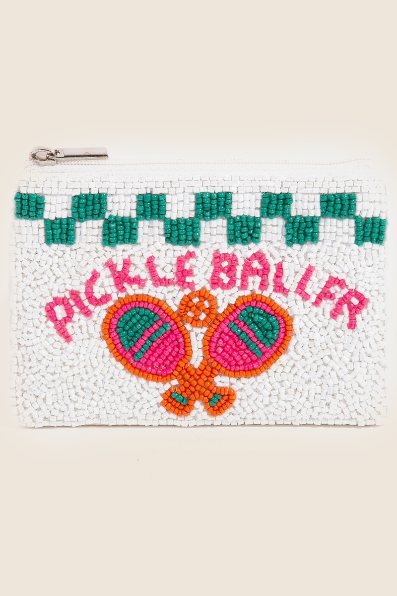 - This bag displays a vibrant seed beaded pickleballer paddles coin purse style. Revel in the intricate design that effortlessly distinguishes this bag, making it a statement piece.