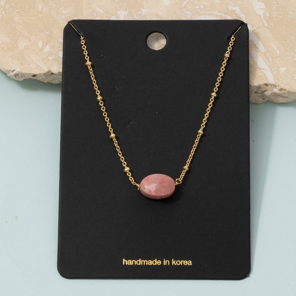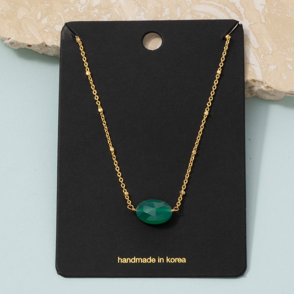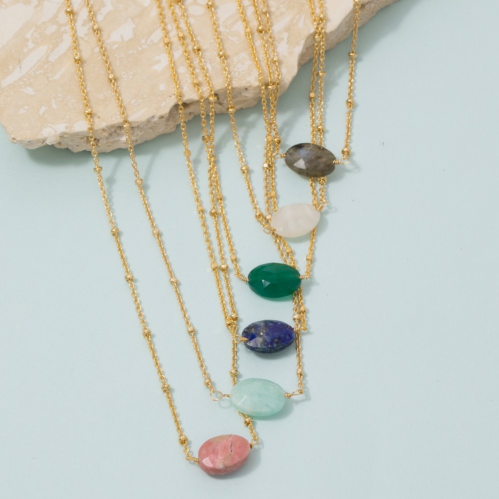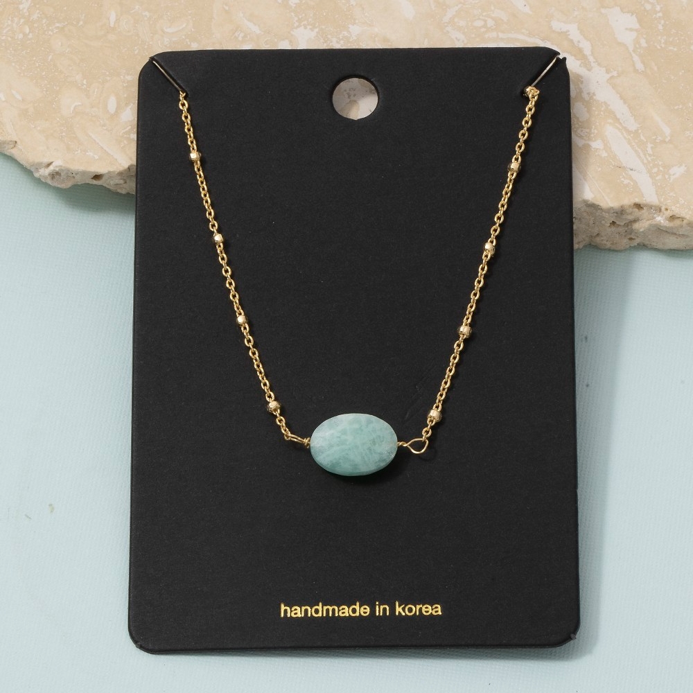 This chain necklace is made with 30% Brass and 70% Gemstone.