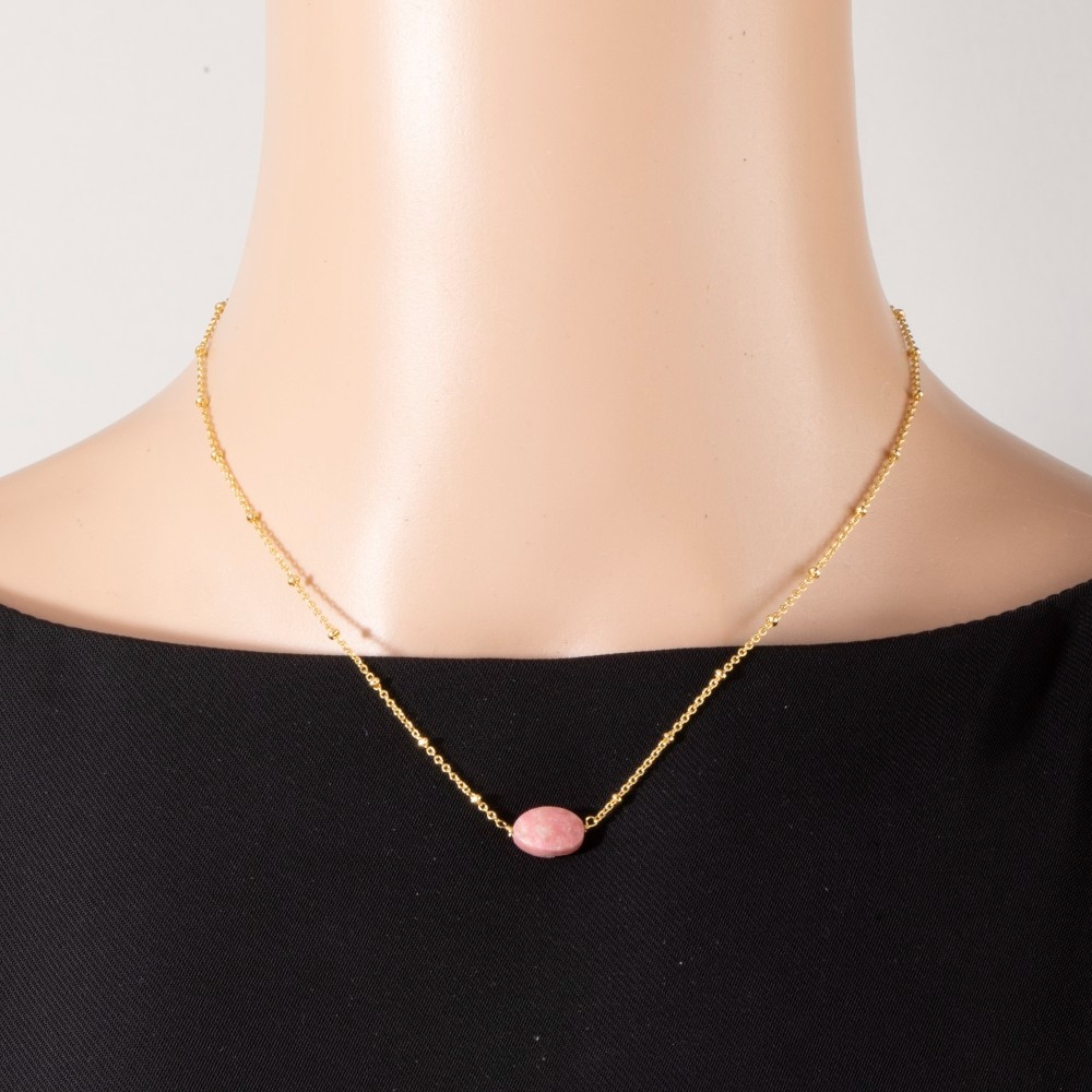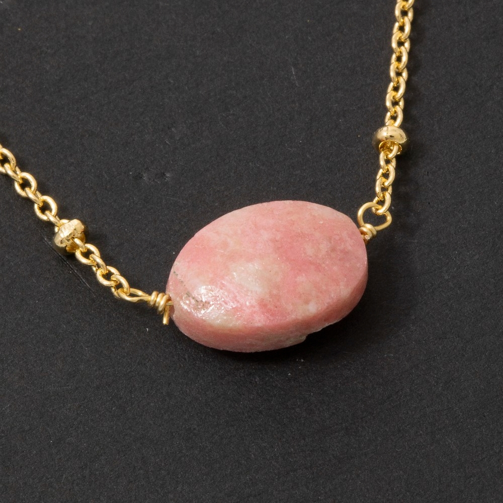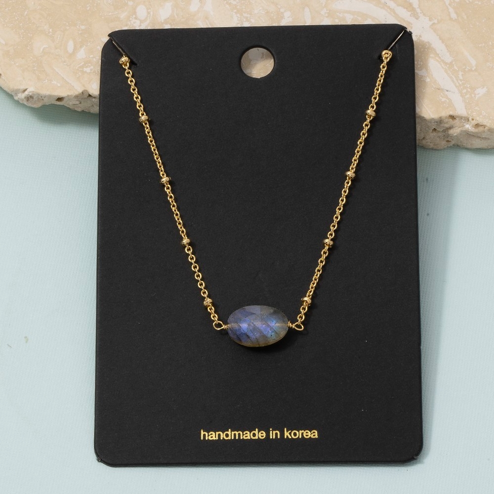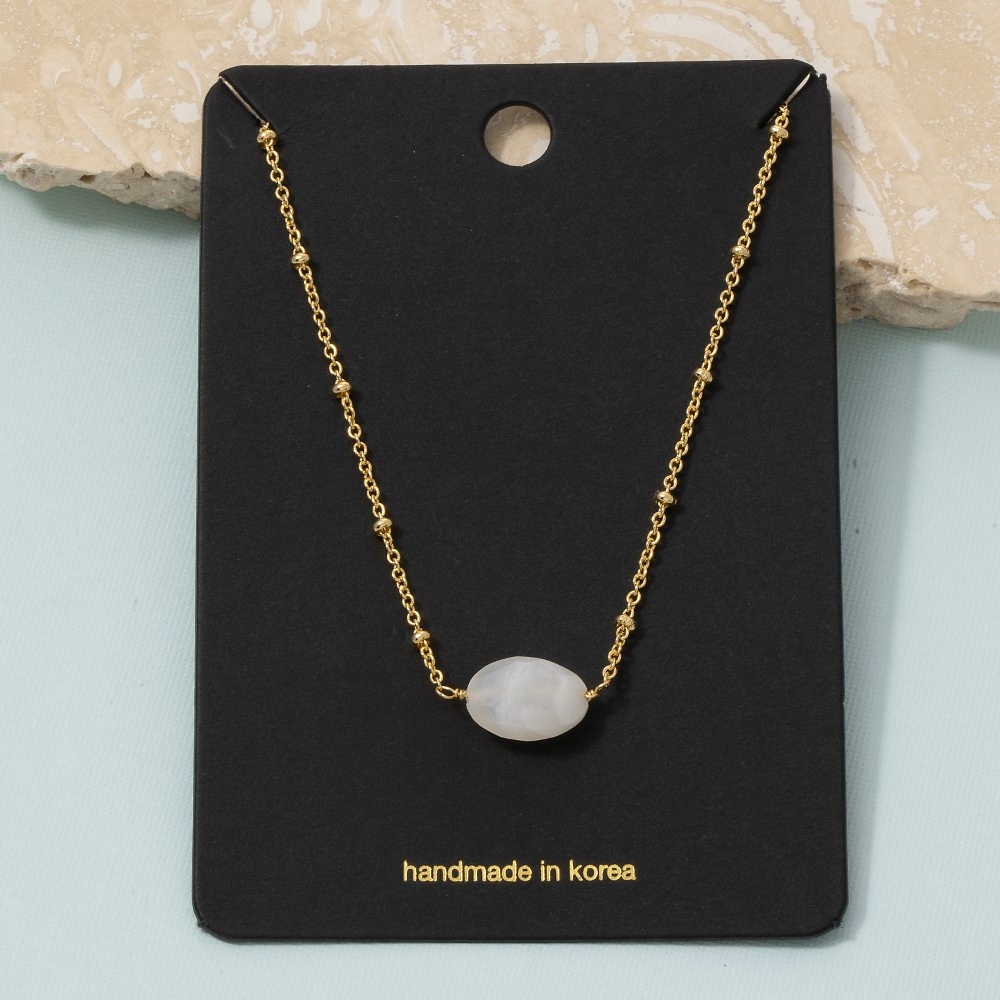 This chain necklace is made with 30% Brass and 70% Gemstone.