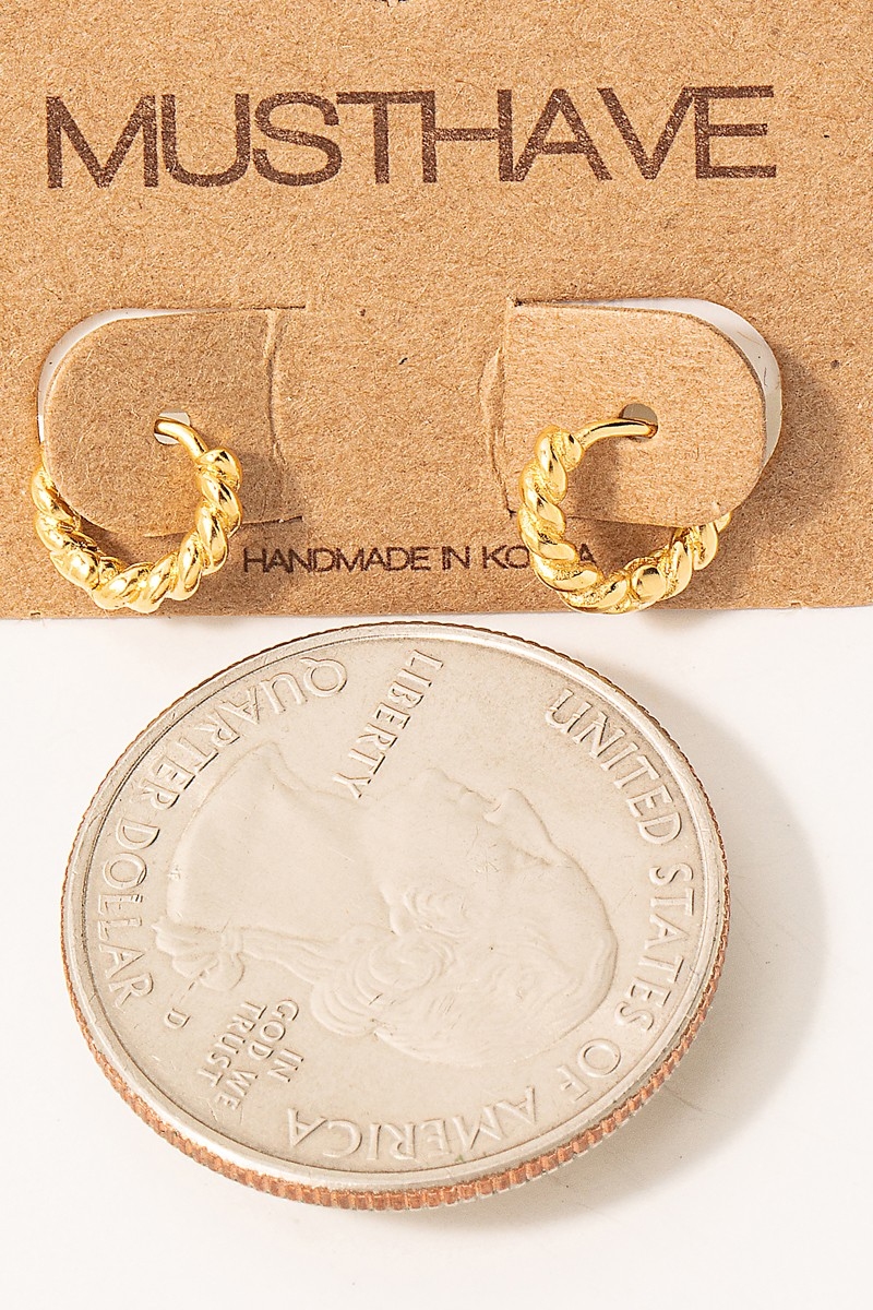 A classic design with a modern twist, this pair of earrings embodies a sophisticated small gold twist huggie design. Perfect for dressing up your favorite outfit, this pair of earrings is a must-have. Available in G.
