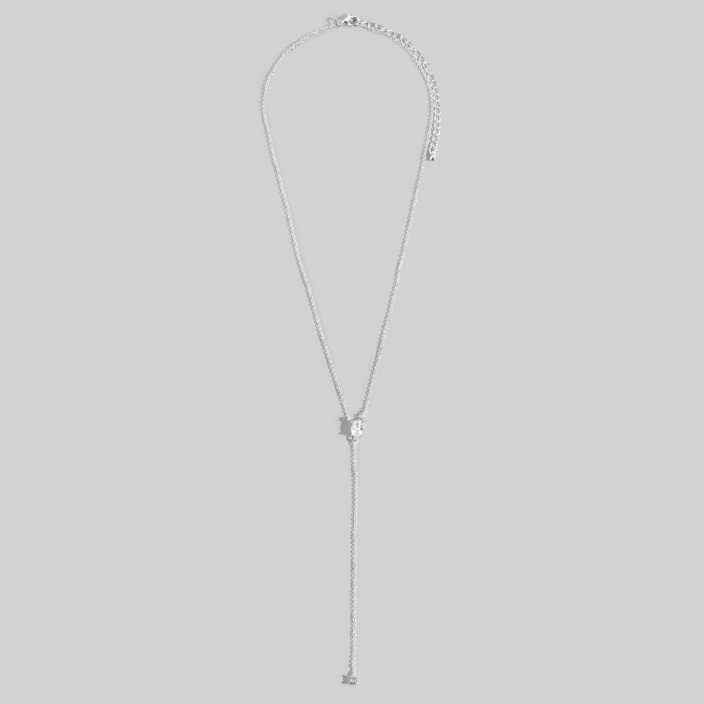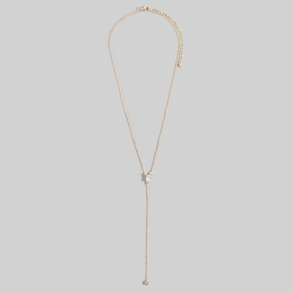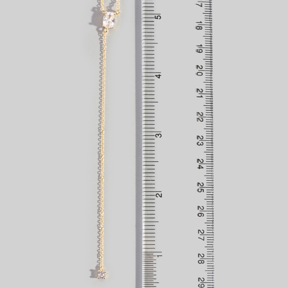 Make a statement, this necklace shows off a distinctive square cubic zirconia drop cubic zirconia lariat y- design. This versatile necklace adds a touch of elegance to any outfit. Available in G, GRN, S. This item is sold in packs of 1.