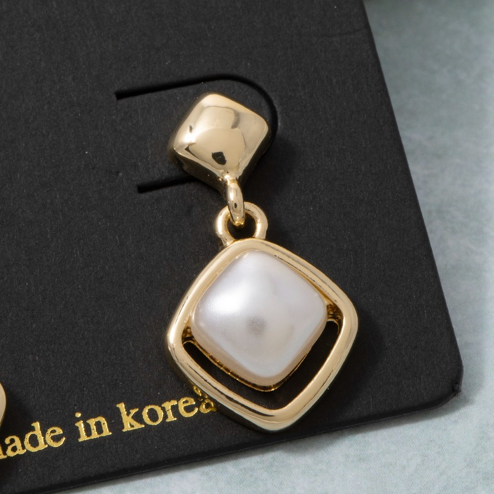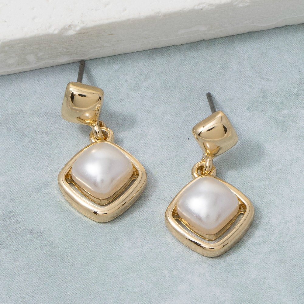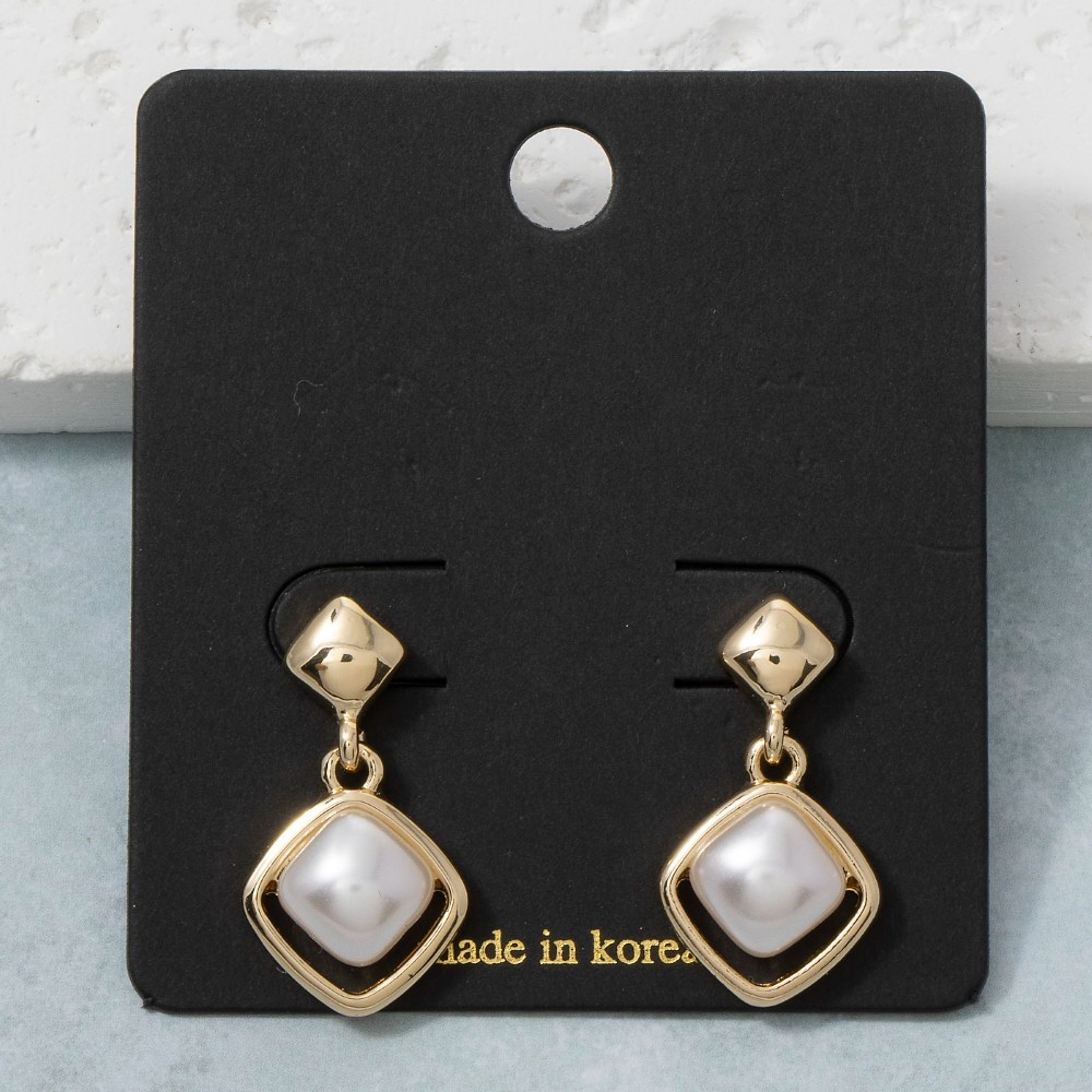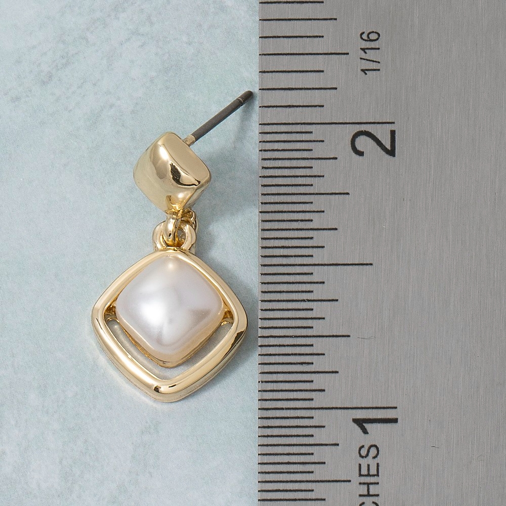 The epitome of sophistication and style, this pair of drop earrings emanates an elegant square pearl in diamond frame design. Perfect for adding a pop of color or texture to any outfit, this pair of drop earrings is a must-have. Available in G. This item is sold in packs of 1.