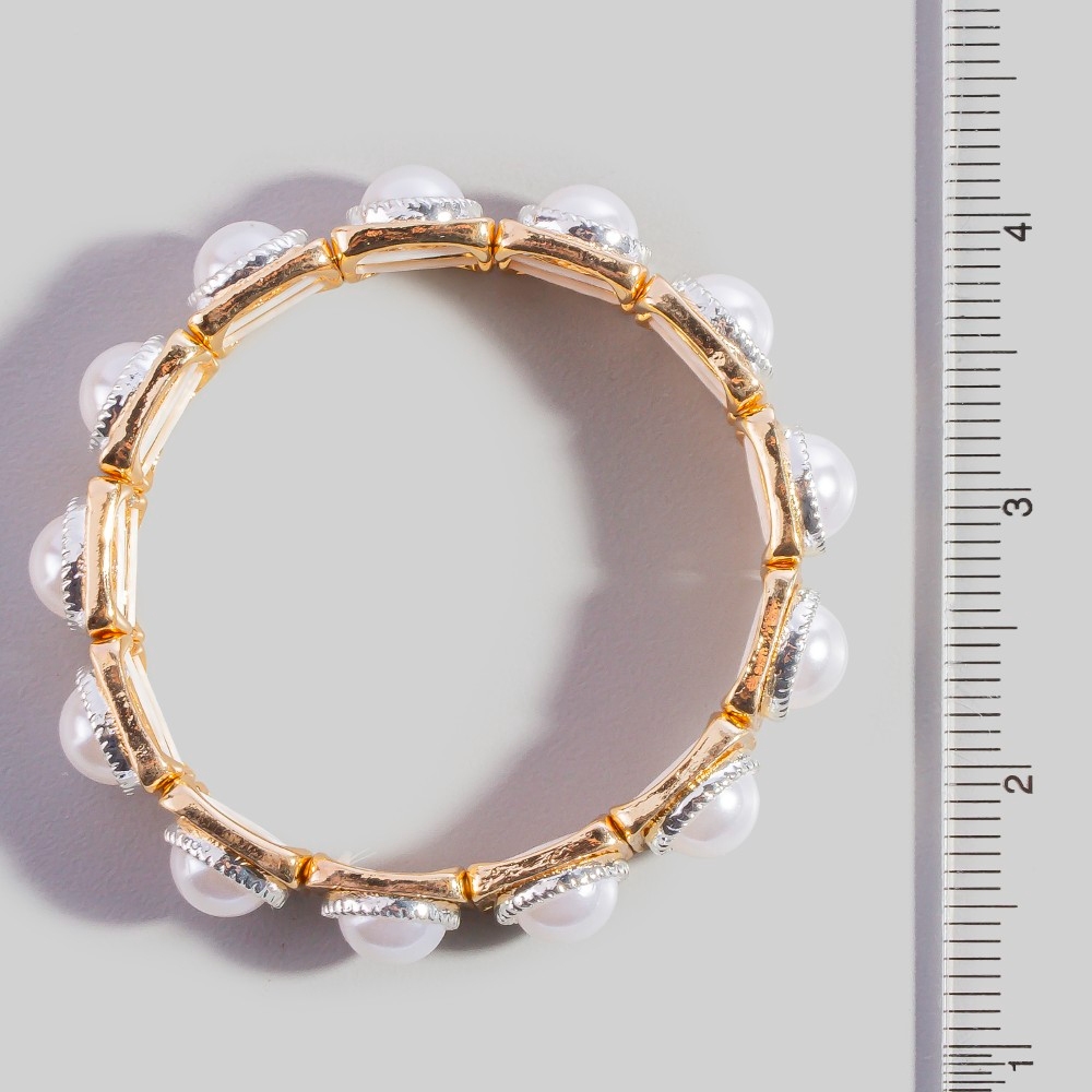 • This stretch bracelet is made with 50% Metal and 50% Pearl.