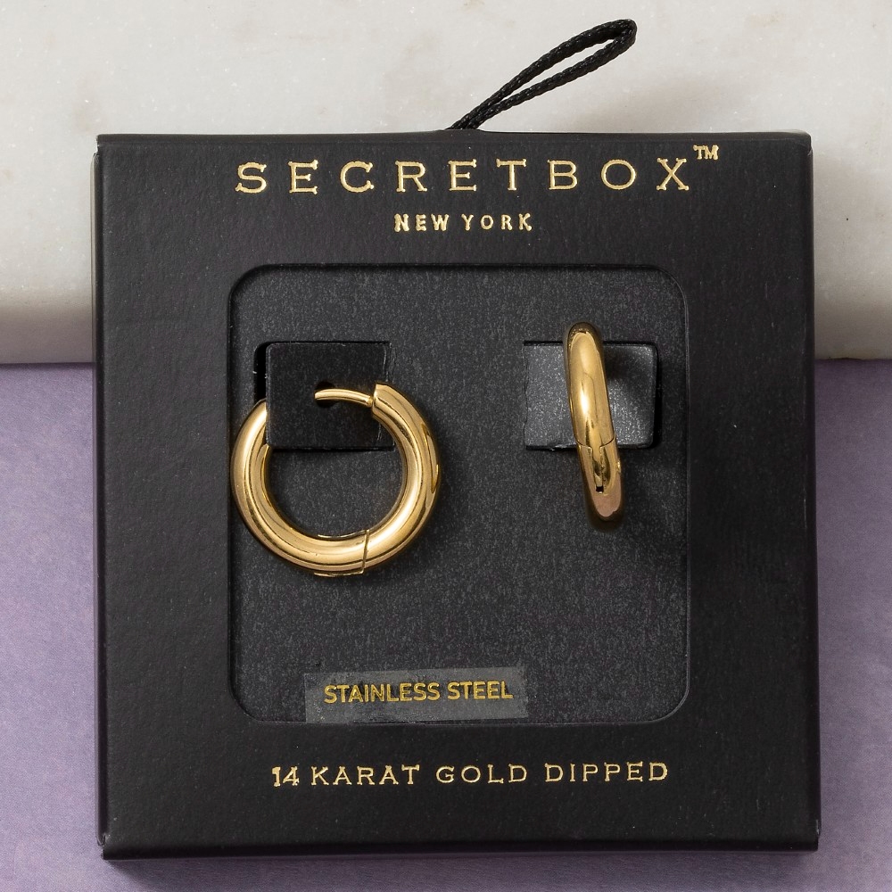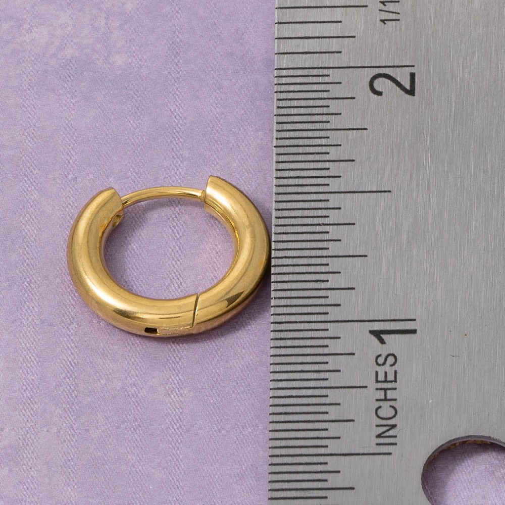 - This piece is perfect for those who want to showcase their unique style, this pair of hoop earrings carries a charming stainless steel chunky thick huggie design. This item is perfect for anyone who loves to accessorize and add some personality to their outfits. Available in GD, RH. This item is sold in packs of 1.