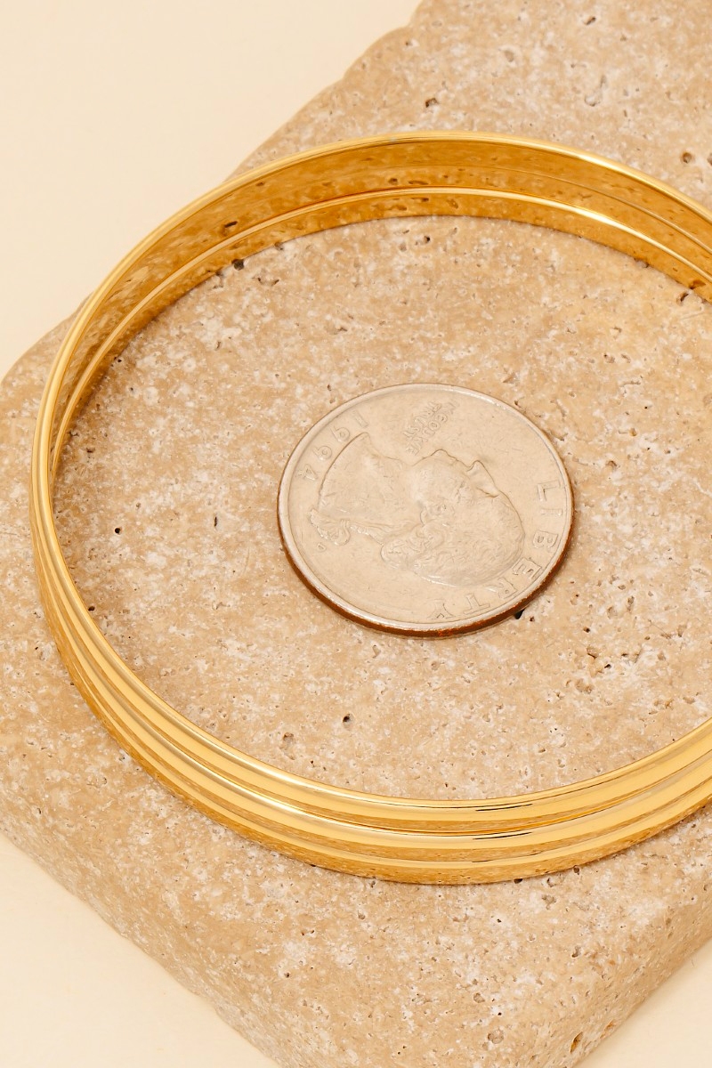 The perfect way to add some sparkle to your outfit, this bangle bracelet possesses a fine stainless steel layered set design. Embrace fashion flexibility with this versatile bangle bracelet, designed to effortlessly enhance the sophistication of any outfit. Available in G and S. This item is sold in packs of 12.