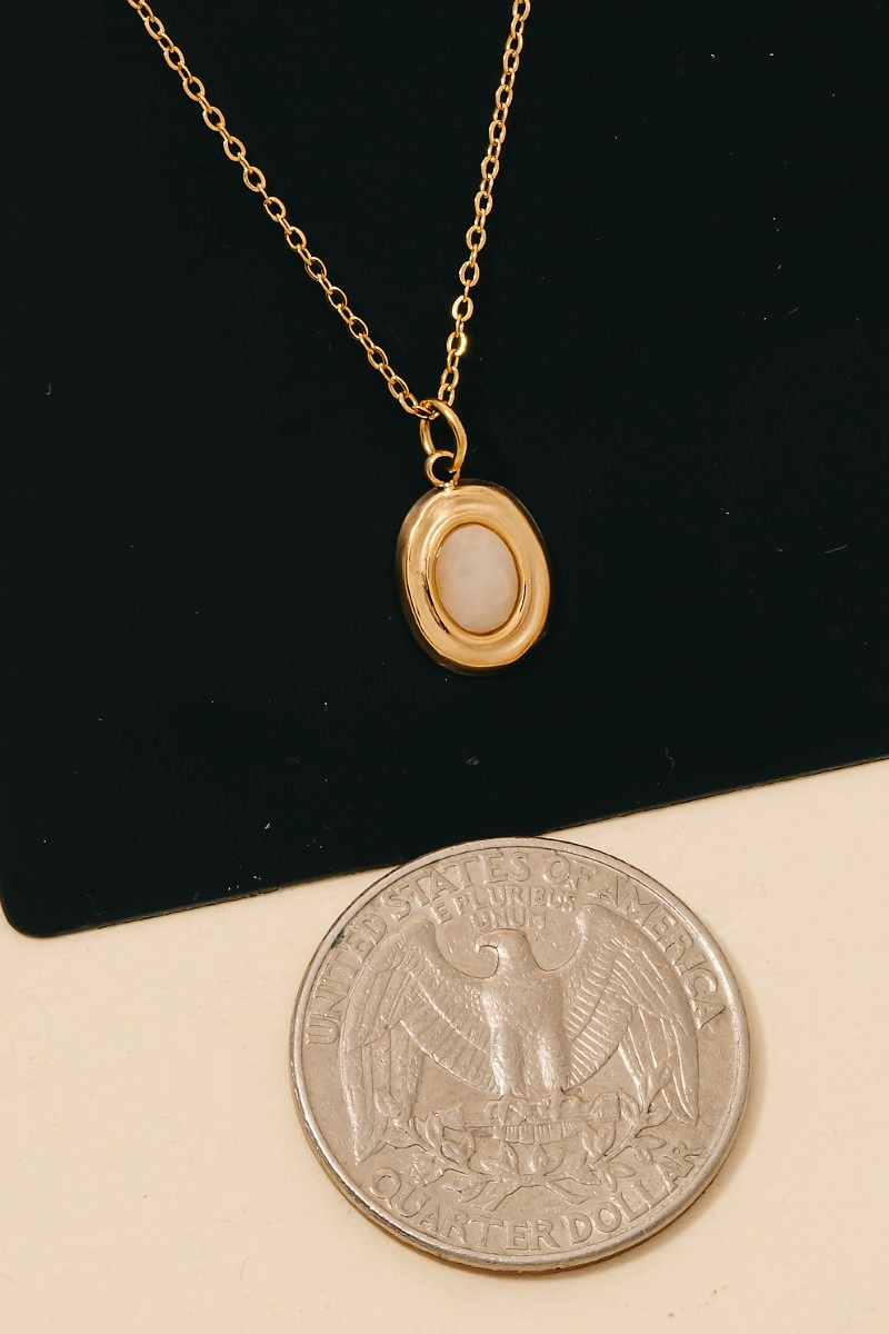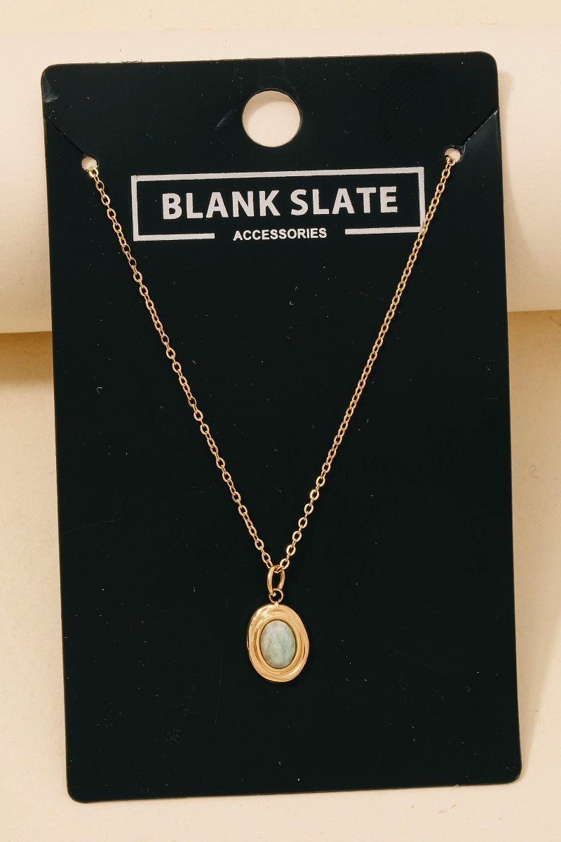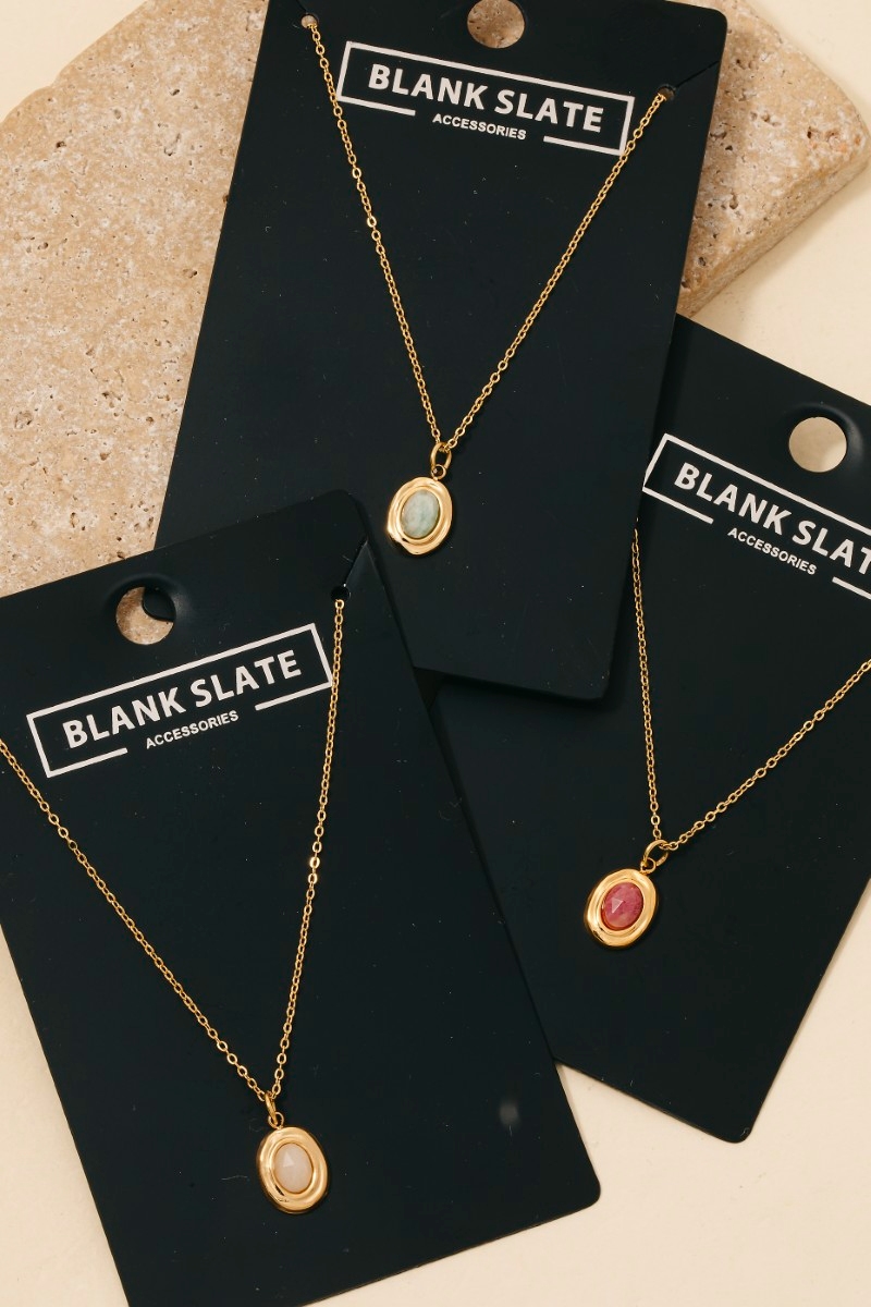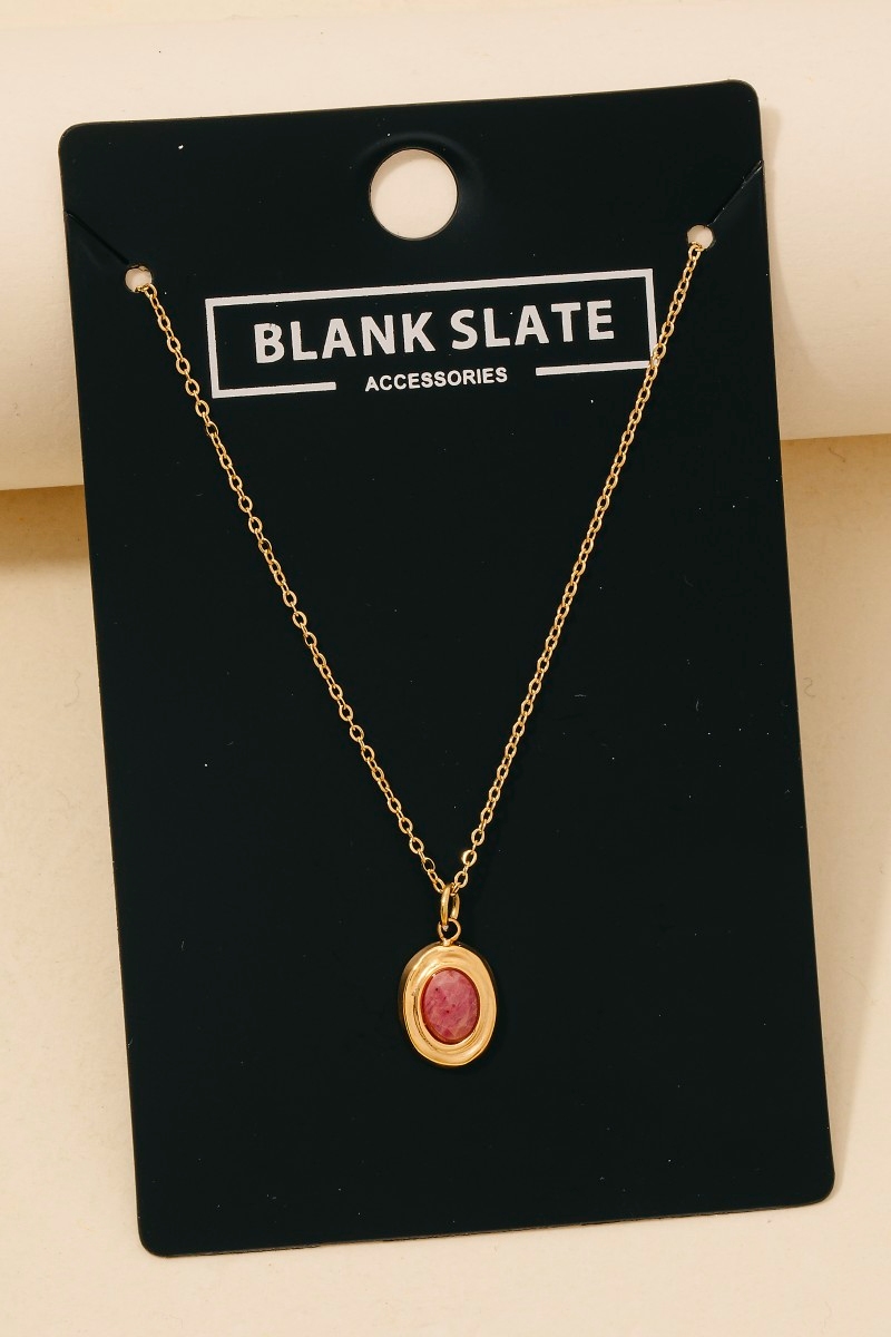 - A modern classic, this necklace contains a special stainless steel oval stone set pendant design. This necklace is an effortless way to add some personality to your outfit. Available in BL, IV, RD. This item is sold in packs of 1.