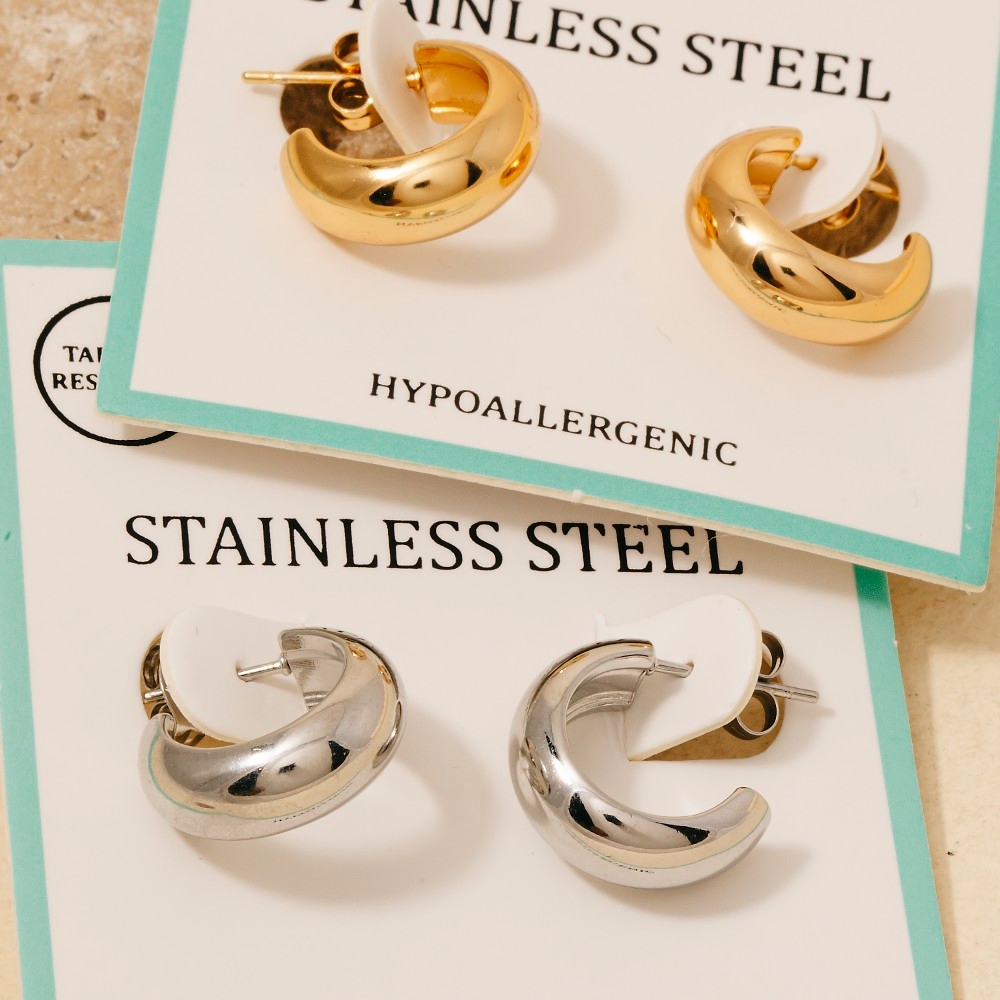 This pair of hoop earrings is featured in our Stainless Steel Earrings Collection.