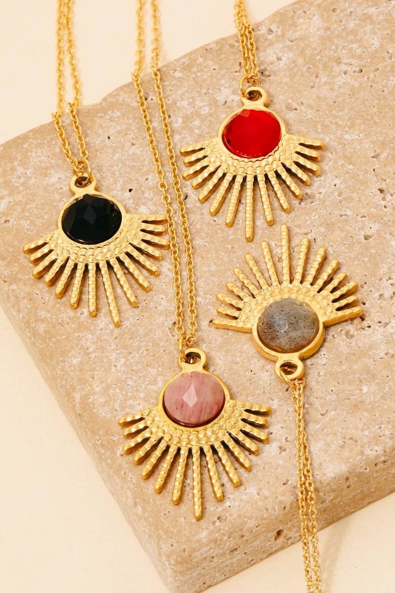 - Perfectly versatile and endlessly stylish, this chain necklace reveals an intricate stainless steel faceted stone antique design. Elevate your fashion game with this versatile chain necklace, seamlessly integrating into your signature style. Available in GDBK, GDCR, GDPZ, GDRD. This item is sold in packs of 1.