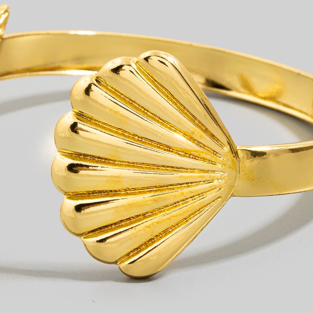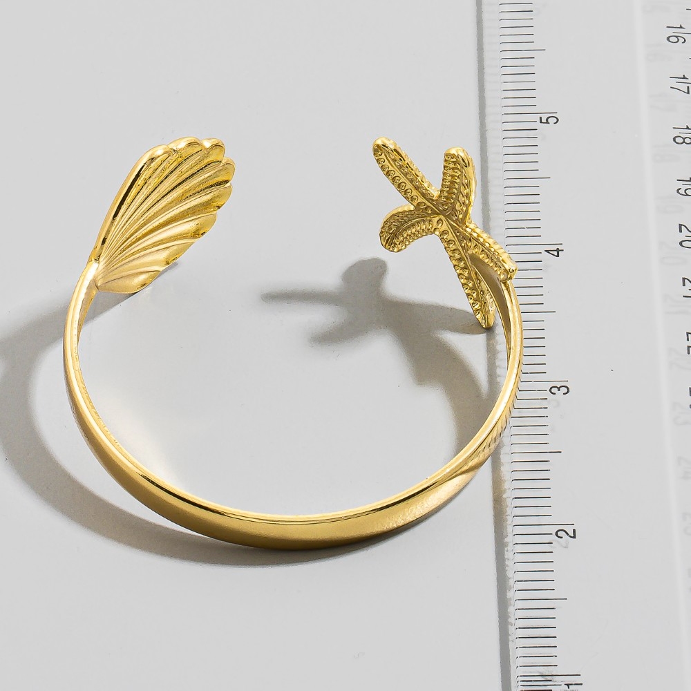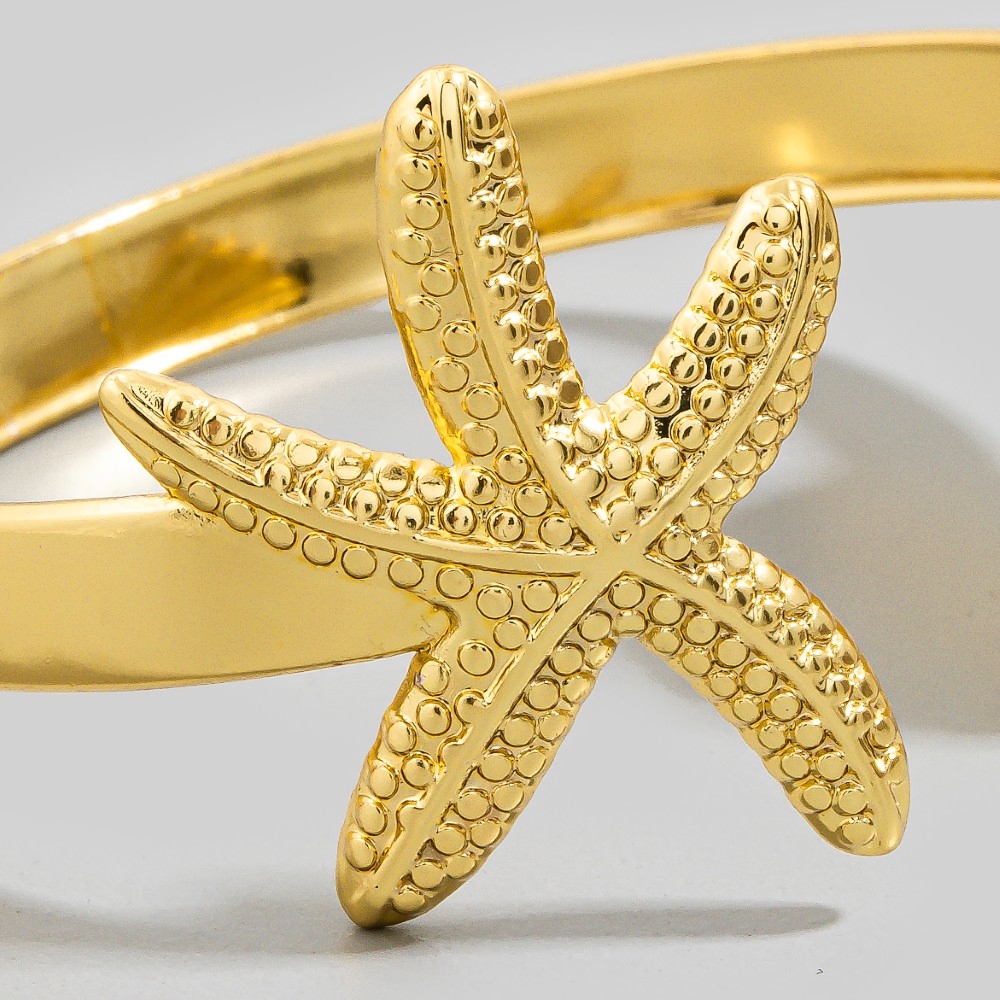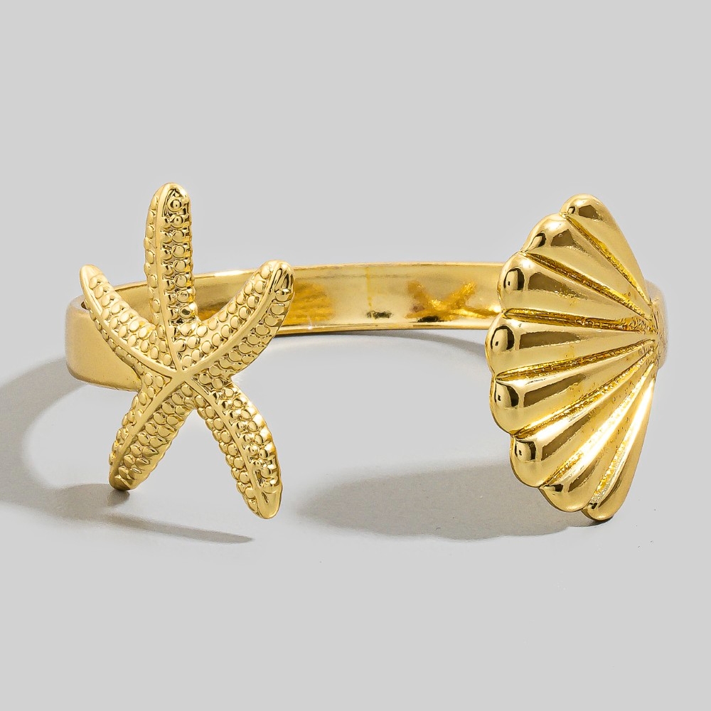 This piece is both timeless and contemporary, this cuff bracelet carries a charming starfish shell flat design. This item is ideal for those who want to add some personality to their outfits without being too bold. Available in SGD. This item is sold in packs of 1.