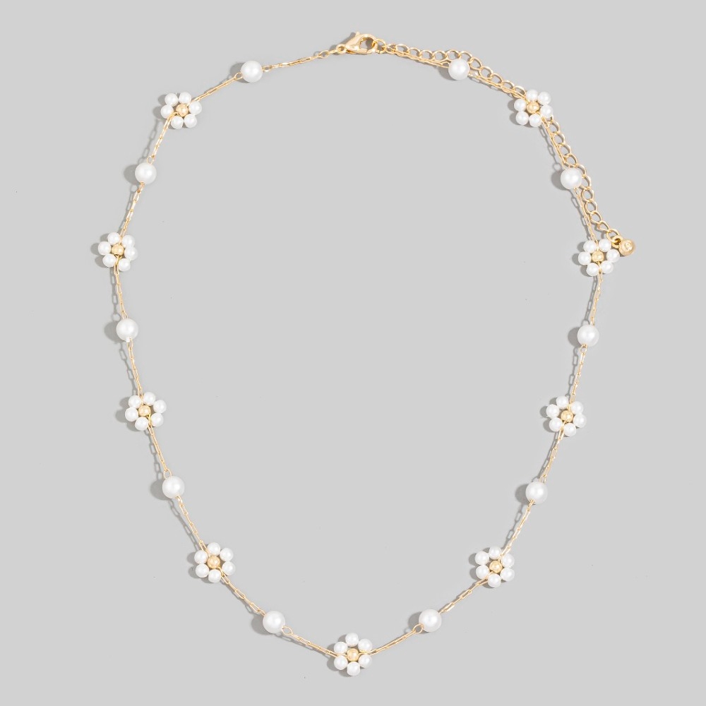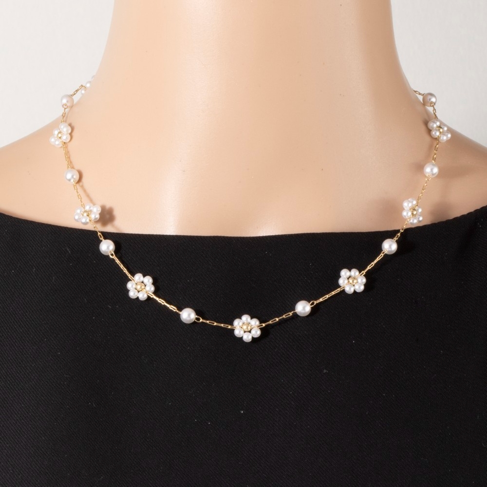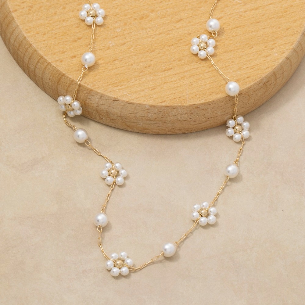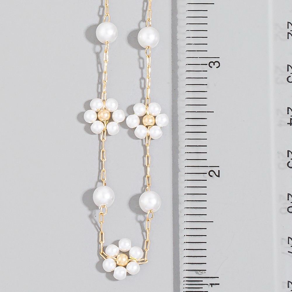 • This piece is the perfect way to add some glamour to your look, this chain necklace includes a stunning station pearl beaded flowers design. Elevate your outfit with this stylish chain necklace that's perfect for any occasion. Available in CRM. This item is sold in packs of 1.