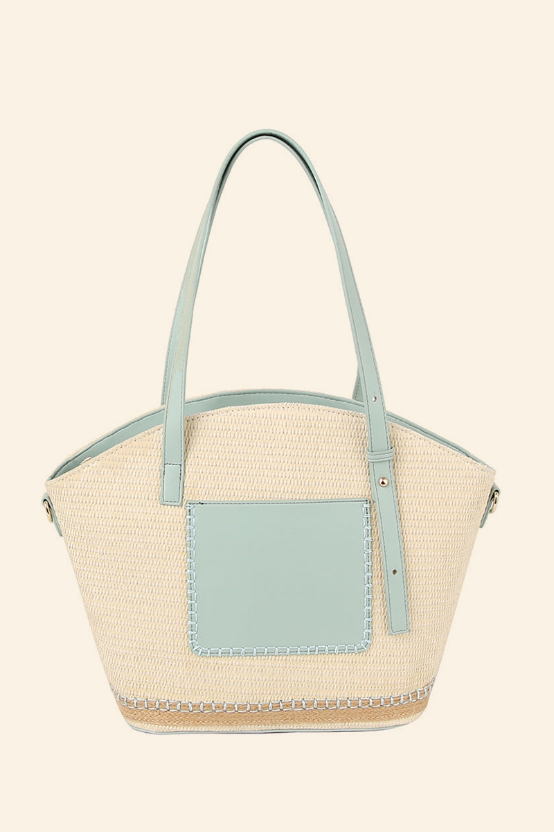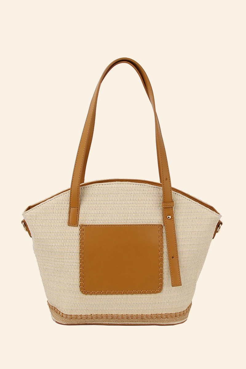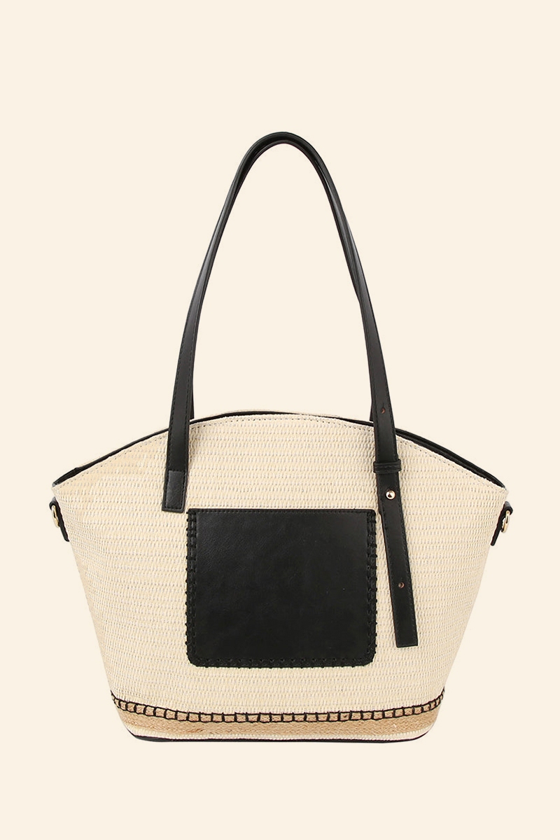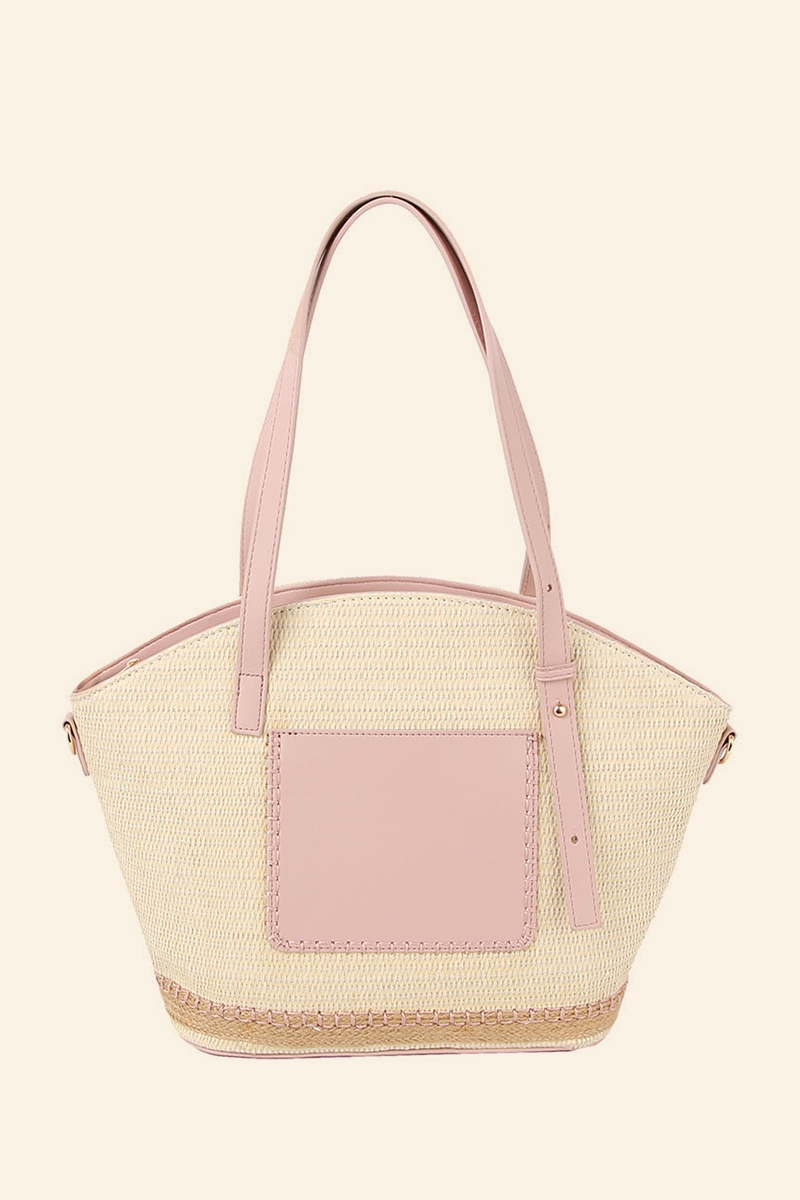 - Perfect for any occasion, from casual to formal, this tote bag offers a remarkable straw front pocket satchel design. Infuse your ensemble with a touch of sophistication using this versatile tote bag, a game-changer in the world of fashion. Available in ZBK, ZBR, ZBS, ZMT, ZPK. This item is sold in packs of 1.