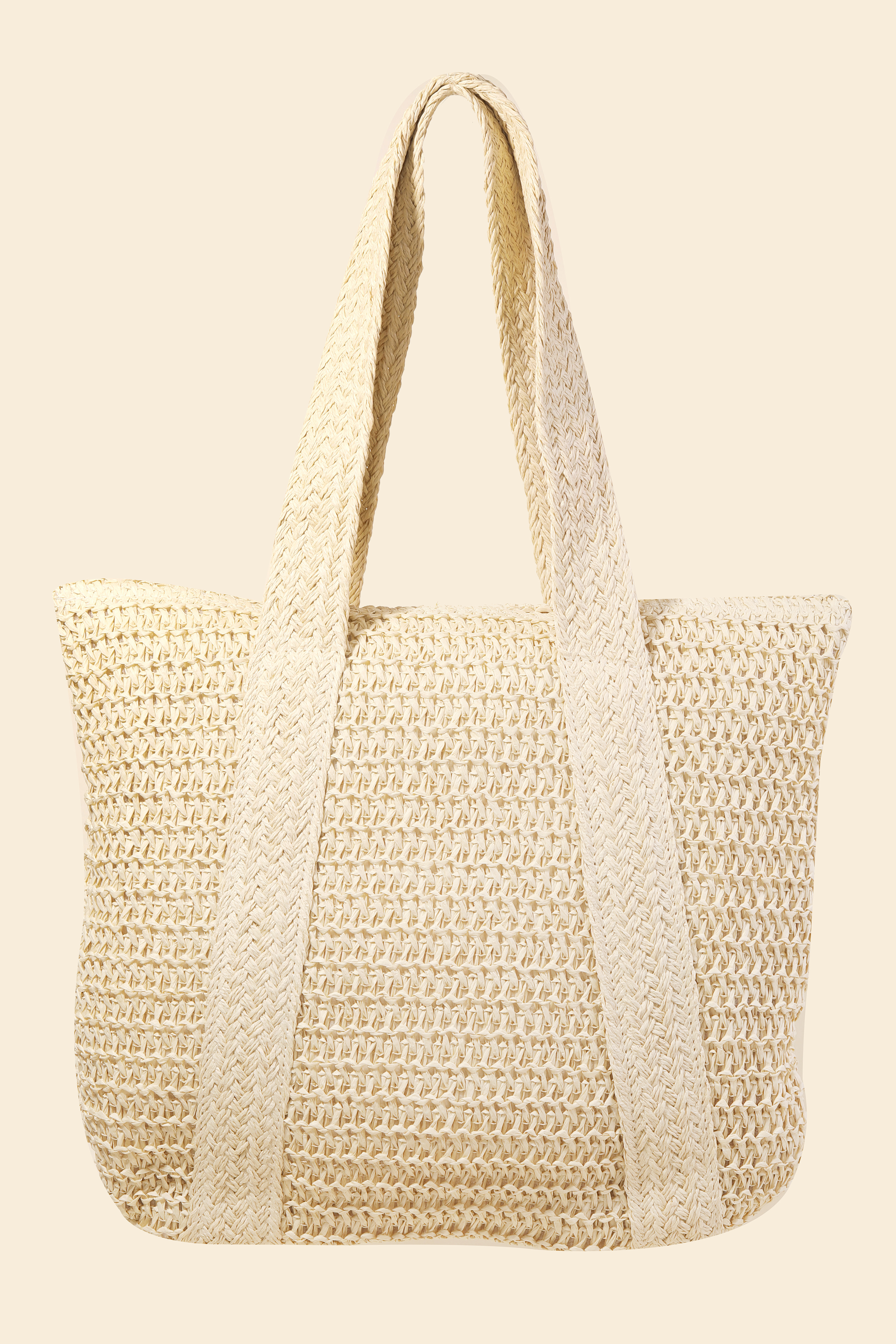 • A must-have addition to any tote bag collection, this tote bag comes with a special straw knit zipper design. Redefine your wardrobe with this versatile tote bag, a timeless addition that brings an air of sophistication to any look. Available in IV, KA. This item is sold in packs of 12.
