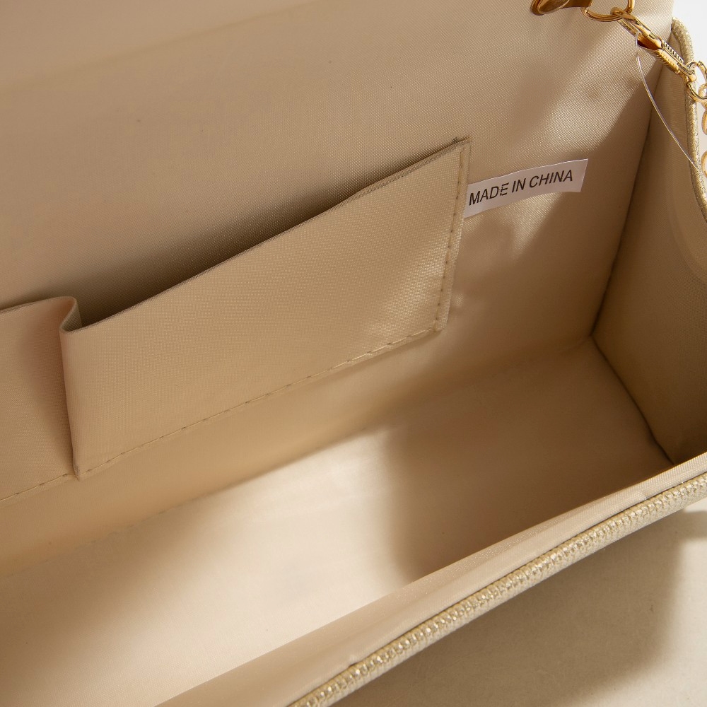 - This clutch bag is made with Polyester/Glass.