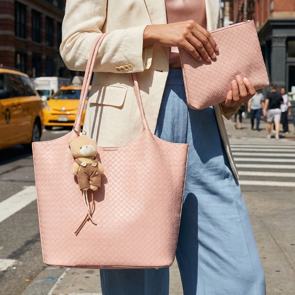 • An instant wardrobe staple, this shoulder bag contains a special teddy bear charm woven hobo set design. Add some personality to your outfit with this stylish shoulder bag. Available in BK, ND, PK, WT. This item is sold in packs of 1.