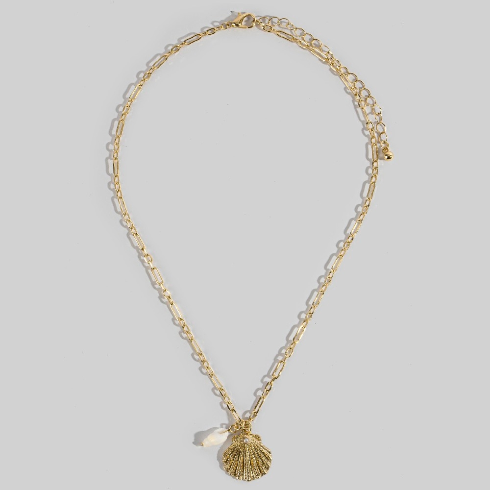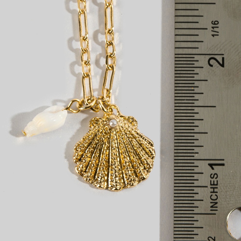 Sleek, modern, and always stylish, this pendant necklace radiates a sleek textured seashell pendant necklace design. A must-have pendant necklace that effortlessly enhances your style, no matter the occasion. Available in GDCRM, RHCRM. This item is sold in packs of 1.