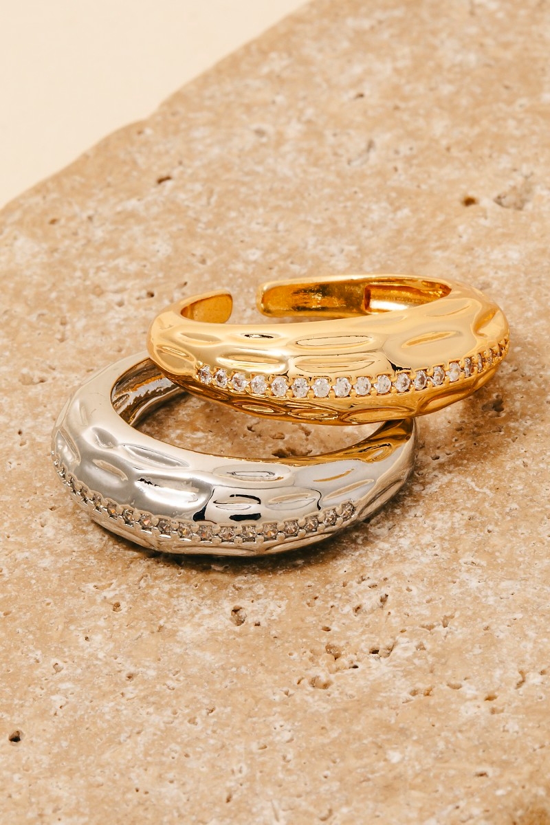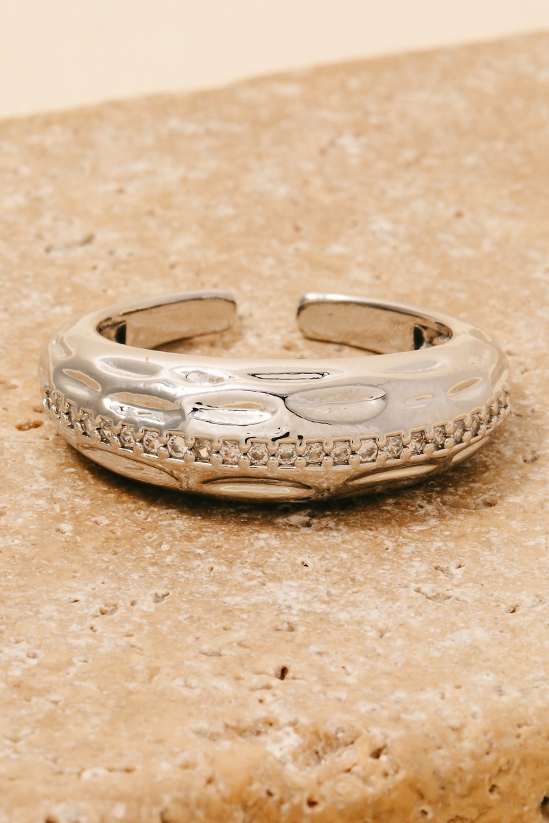 • A versatile piece that can be dressed up or down, this ring displays a unique textured pave row open band design. This ring is an effortless way to add some personality to your outfit. Available in G, S. This item is sold in packs of 1.