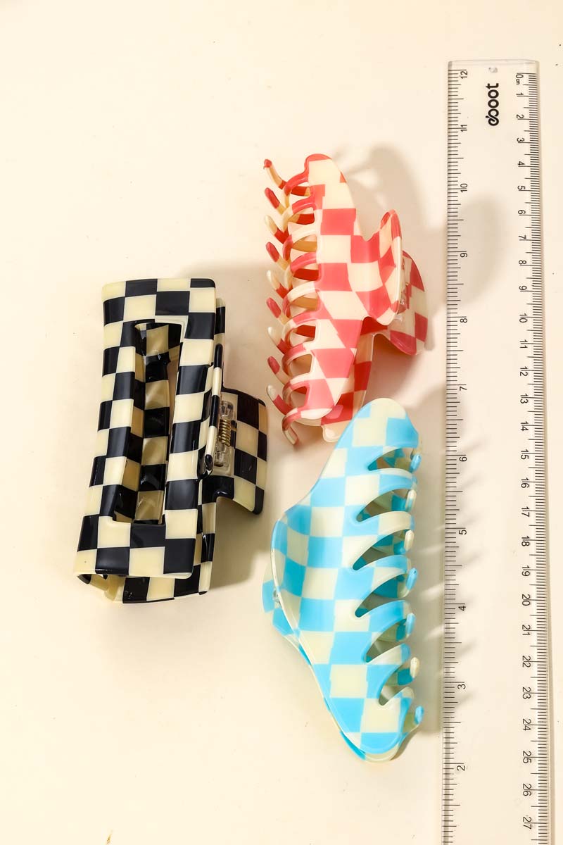 This piece is the perfect way to add some glamour to your look, this hair clip carries a charming three piece checkered s set design. Upgrade your fashion game with this versatile hair clip, a timeless addition that complements any outfit seamlessly. Available in Multi. This item is sold in packs of 1.