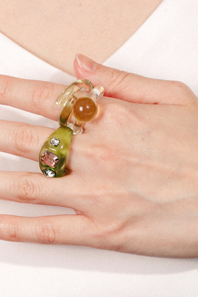 - An instant wardrobe staple, this ring presents a striking three piece rhinestone resin set design. Redefine your wardrobe with this versatile ring, a timeless addition that brings an air of sophistication to any look. Available in BR, PK, BL, CL and GN. This item is sold in packs of 1.