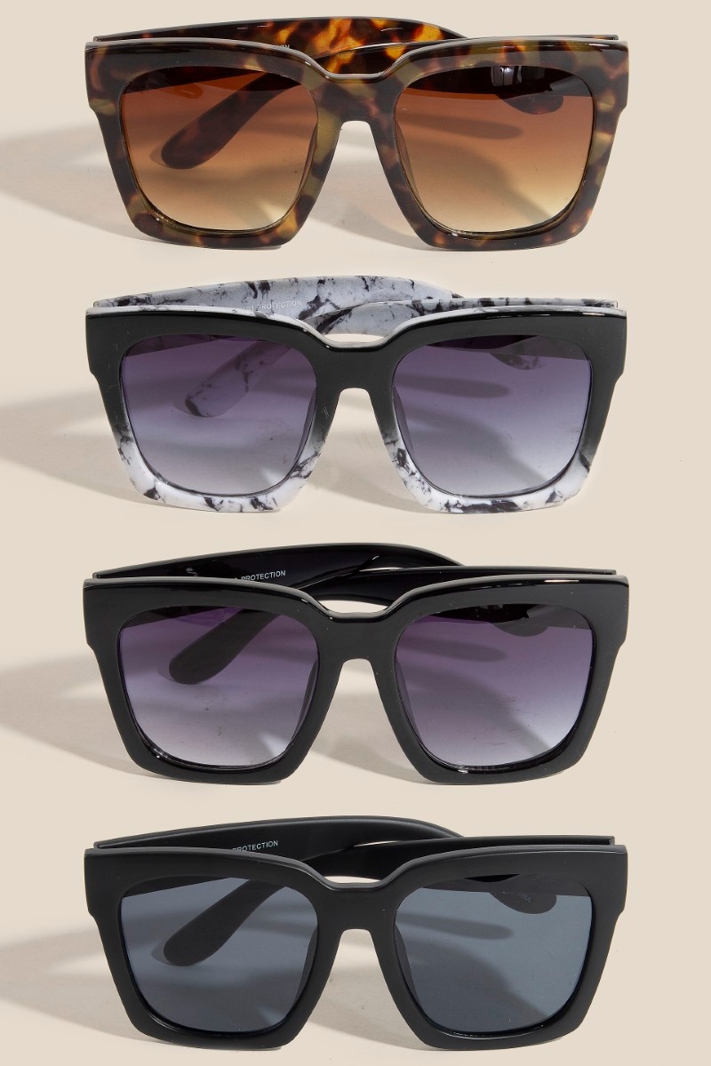- The perfect way to add some sparkle to your outfit, this set of sunglasses highlights a special Tortoise frame square sunglasses set design. Infuse elegance into your daily wardrobe with the versatile charm of this must-have set of sunglasses. This item is sold in packs of 12.