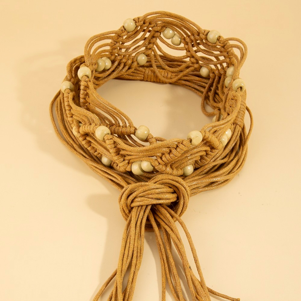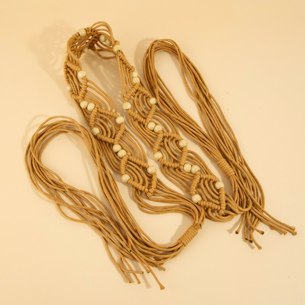 • This piece is the perfect way to add some glamour to your look, this braided belt encompasses a grand triangle pattern design. A versatile braided belt that's perfect for any occasion, adding a touch of elegance and style to any outfit. Available in BR, IV, KA. This item is sold in packs of 1.