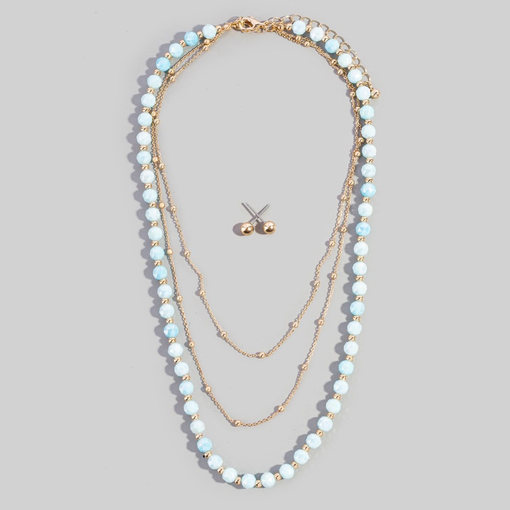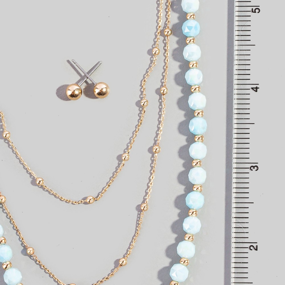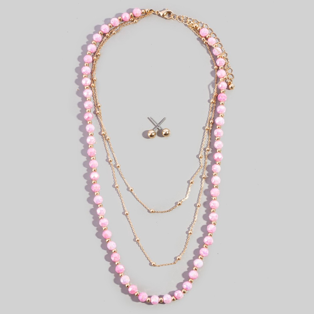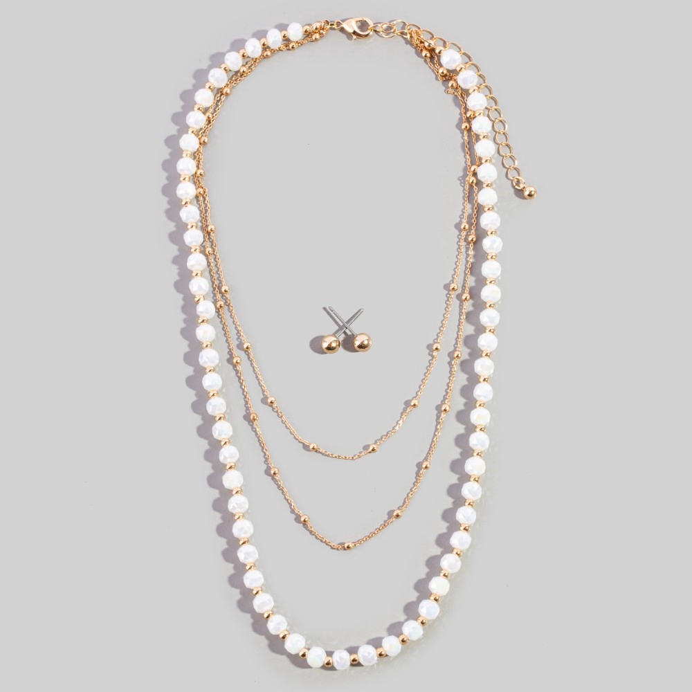 Layered Pearl Bead Chain Flower Pendant Necklace Set