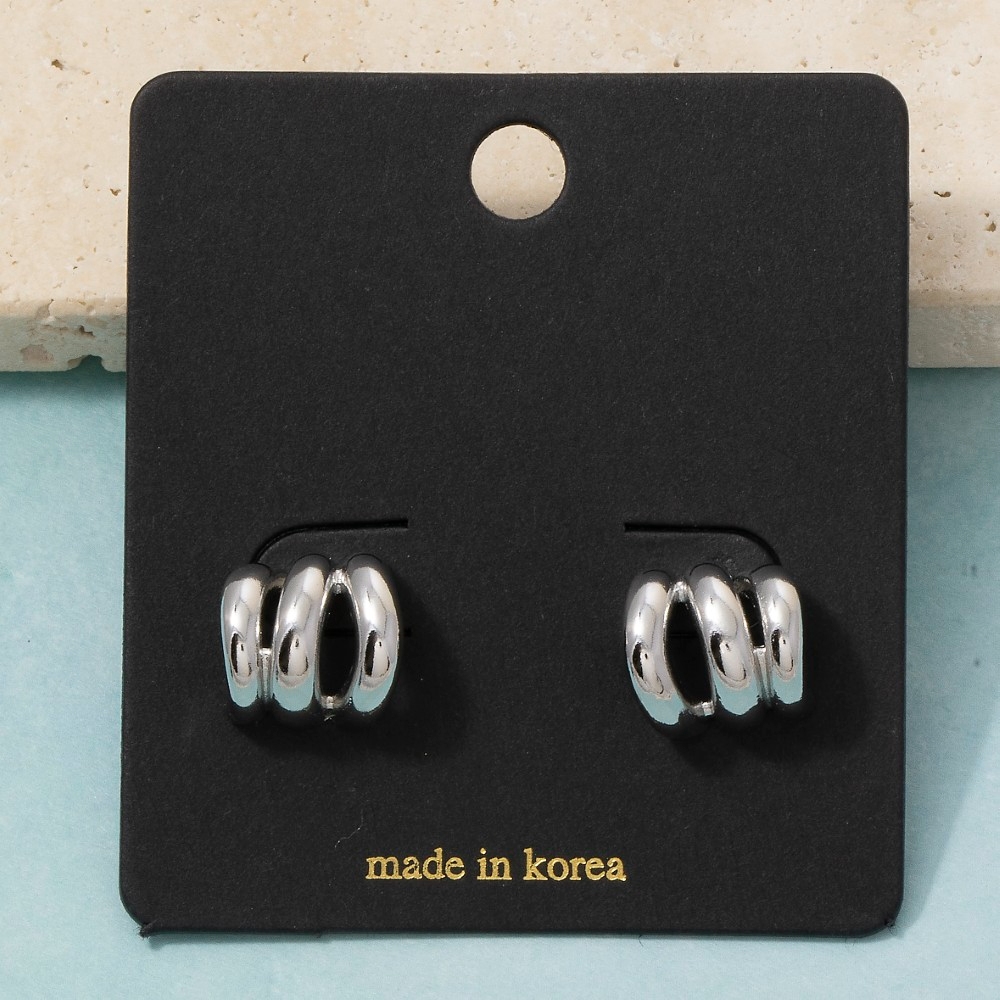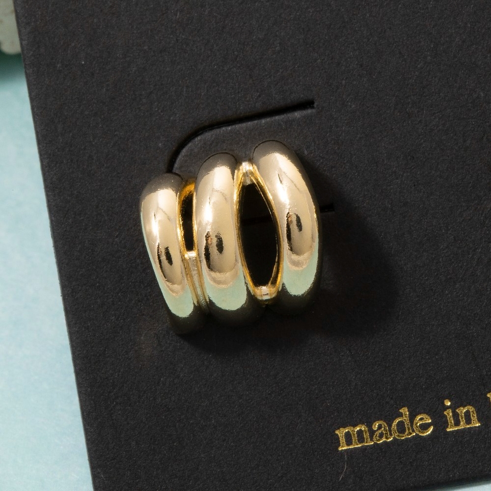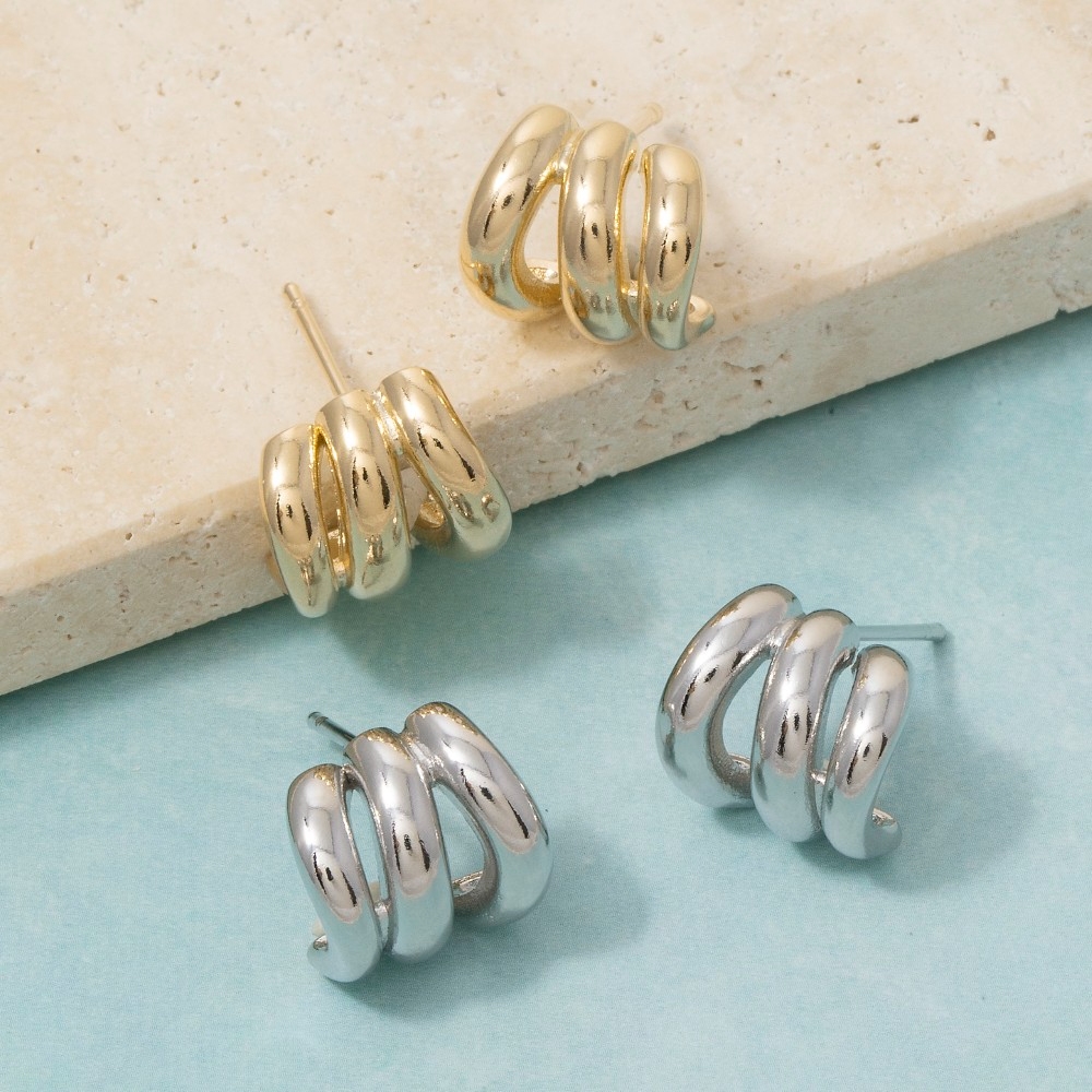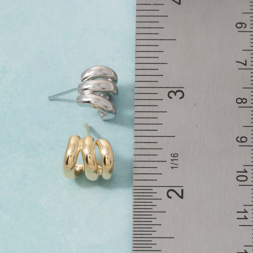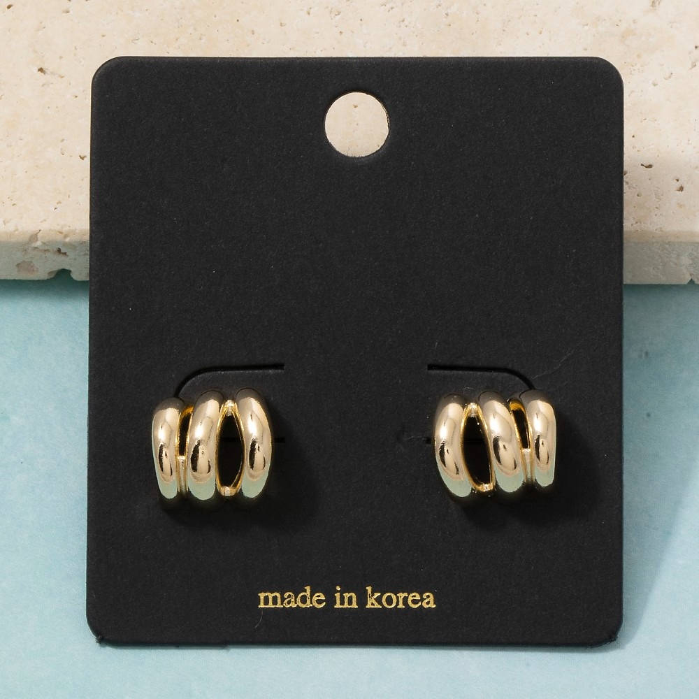 The perfect way to showcase your unique style, this pair of hoop earrings brings a one-of-a-kind triple tube ring huggie design. Achieve a perfect balance of style and sophistication with this versatile pair of hoop earrings, the ultimate choice for the fashion-savvy individual. Available in G, S. This item is sold in packs of 1.