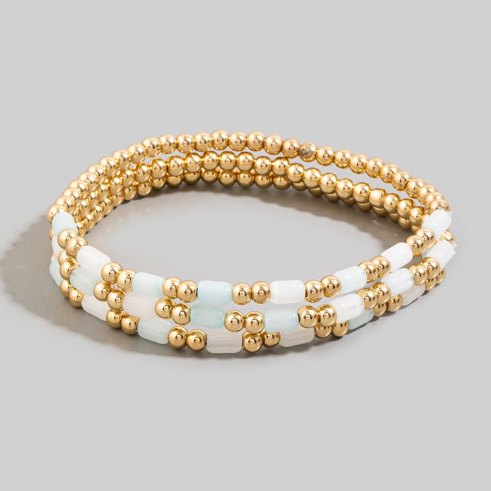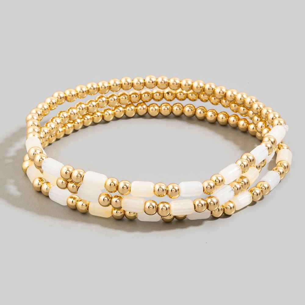 • A bold and daring choice, perfect for those who want to stand out from the crowd, this stretch bracelet shows off a distinctive tube & gold ball beaded set design. Elevate your everyday style with this versatile stretch bracelet, a simple yet impactful addition to your fashion repertoire. This item is sold in packs of 1.