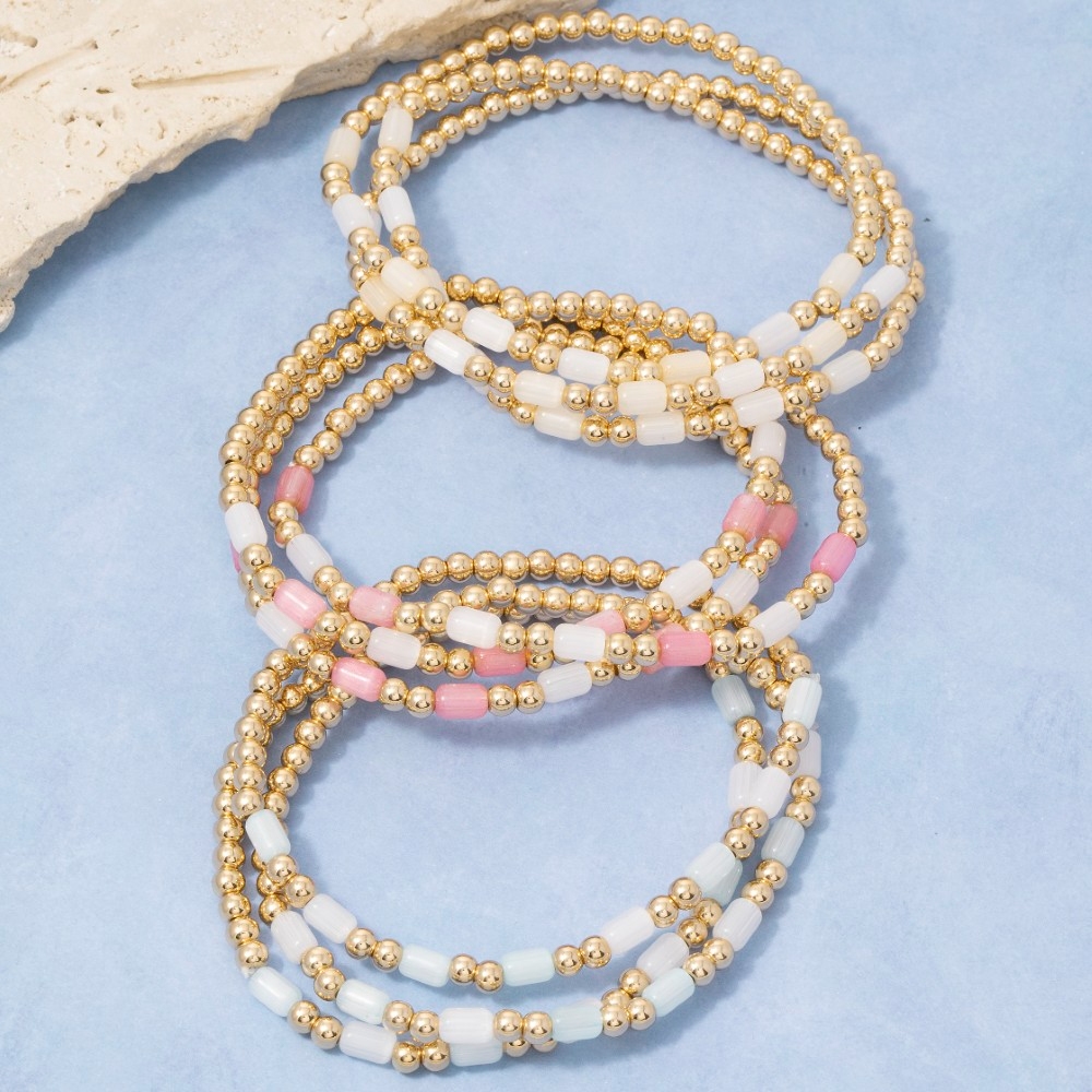 Multicolor Tube Bead & Pearl Stretch Bracelet