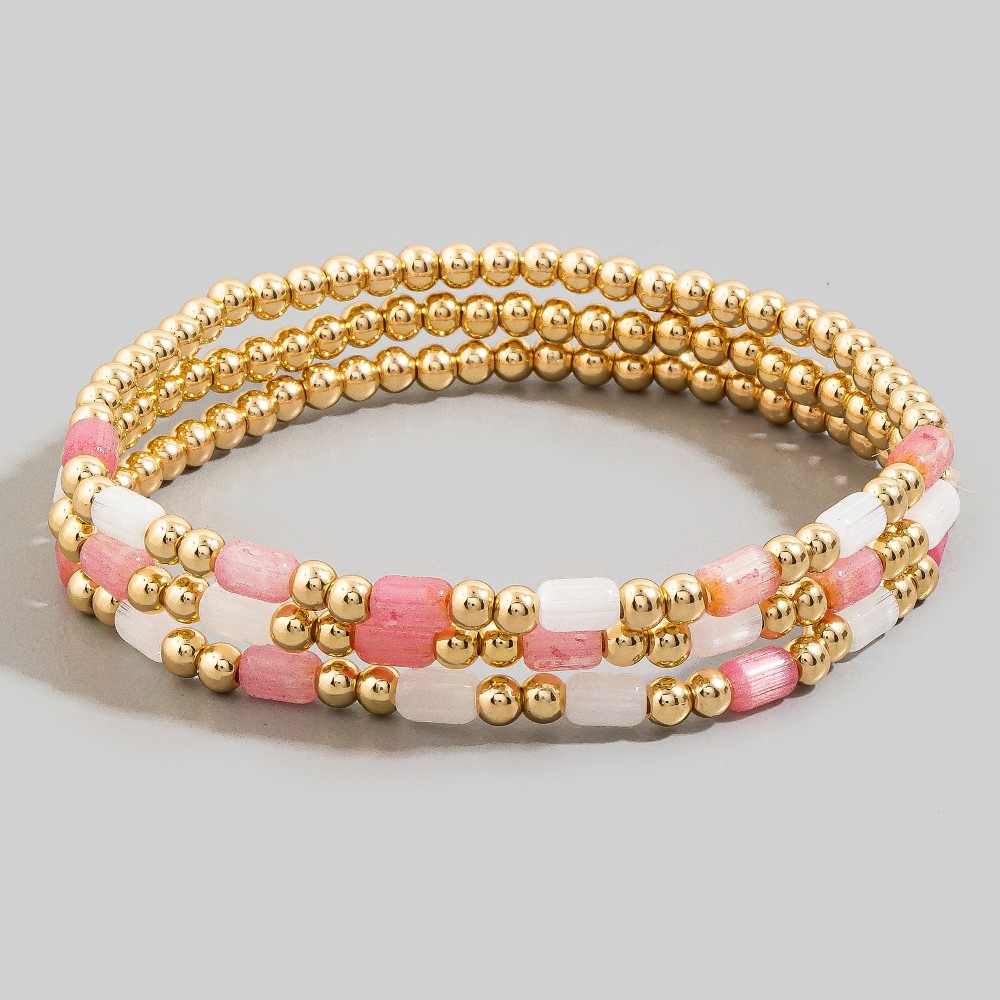 - A bold and daring choice, perfect for those who want to stand out from the crowd, this stretch bracelet shows off a distinctive tube & gold ball beaded set design. Elevate your everyday style with this versatile stretch bracelet, a simple yet impactful addition to your fashion repertoire. This item is sold in packs of 1.