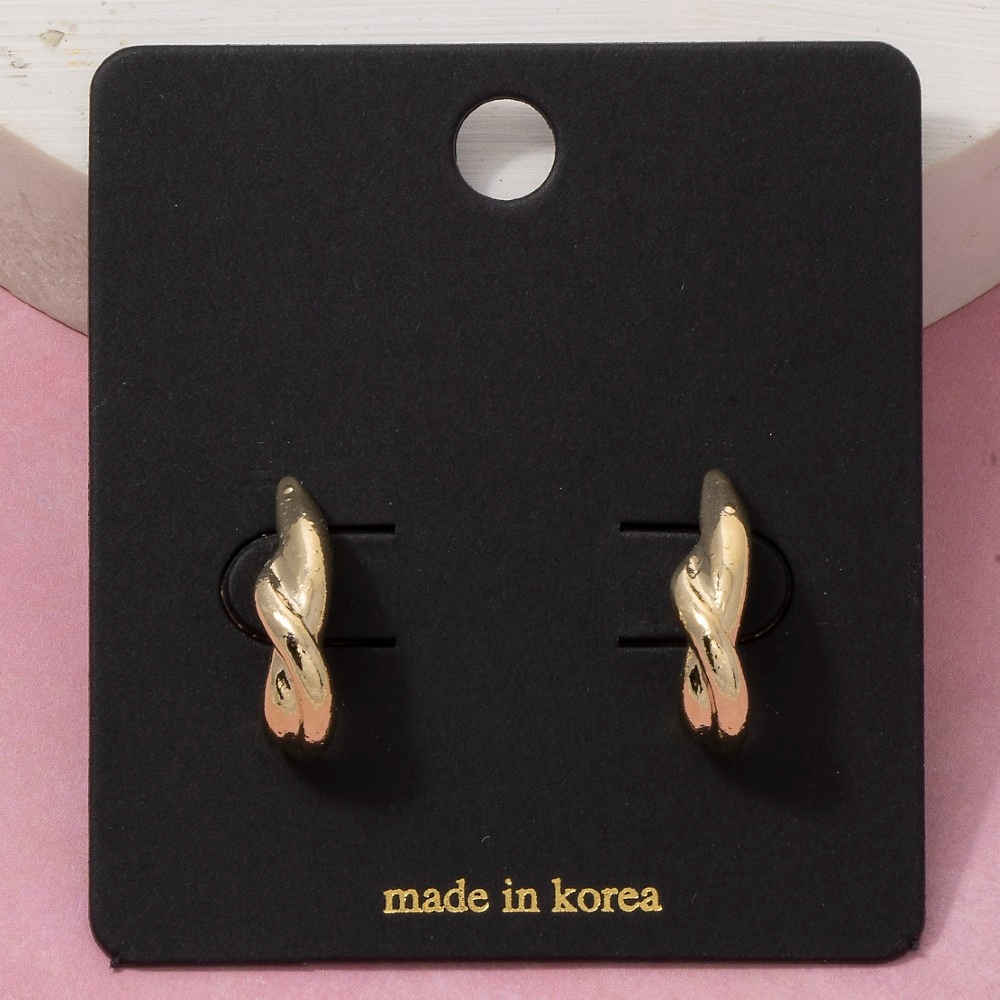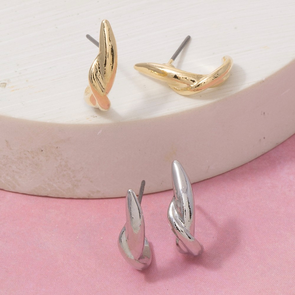 A bold and daring choice that is sure to impress, this pair of hoop earrings offers a remarkable twisted knot huggie design. Infuse elegance into your daily wardrobe with the versatile charm of this must-have pair of hoop earrings. This item is sold in packs of 12.